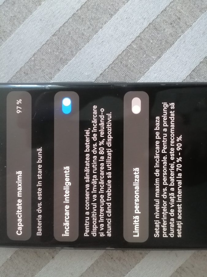 Nu prezinta urme de uzua fiind folosit mereu cu folie si husa. In poze are aplicata o folie pe ecran, care a prins aer in unele puncte. Ecranul este intact fara nici o deformare.