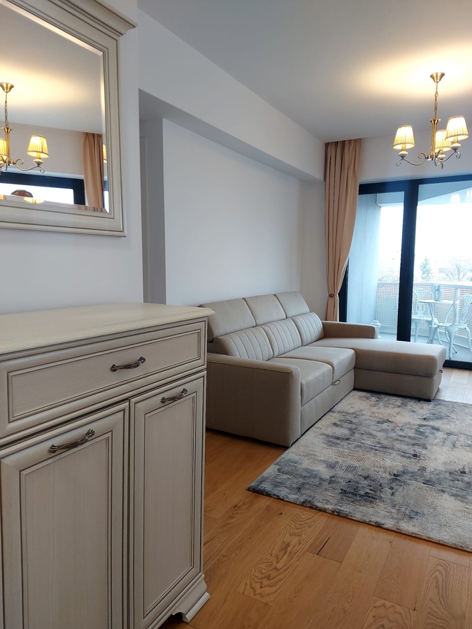 Se inchiriaza apartament cu 2 camere in complexul Herastrau Parkview. Apartamentul este elegant, dotat cu tot ce este necesar pentru o locuire confortabila.Are 2 balcoane orientate diferit, bucataria este inchisa. Etajul 3 din 6. Se inchiriaza pe minim 1 an. Animalele de companie nu sunt acceptate. Se percepe garantie egala cu o valoare lunara a unei chirii. Disponibil imediat.Loc parcare subteran inclus, direct proprietar.Negociabil.