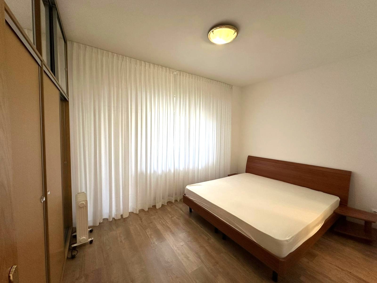 Dormitor confortabil cu pat matrimonial, spatii de depozitare generoase, deservit de o baie matrimoniala cu cada si iesire catre balcon inchis.