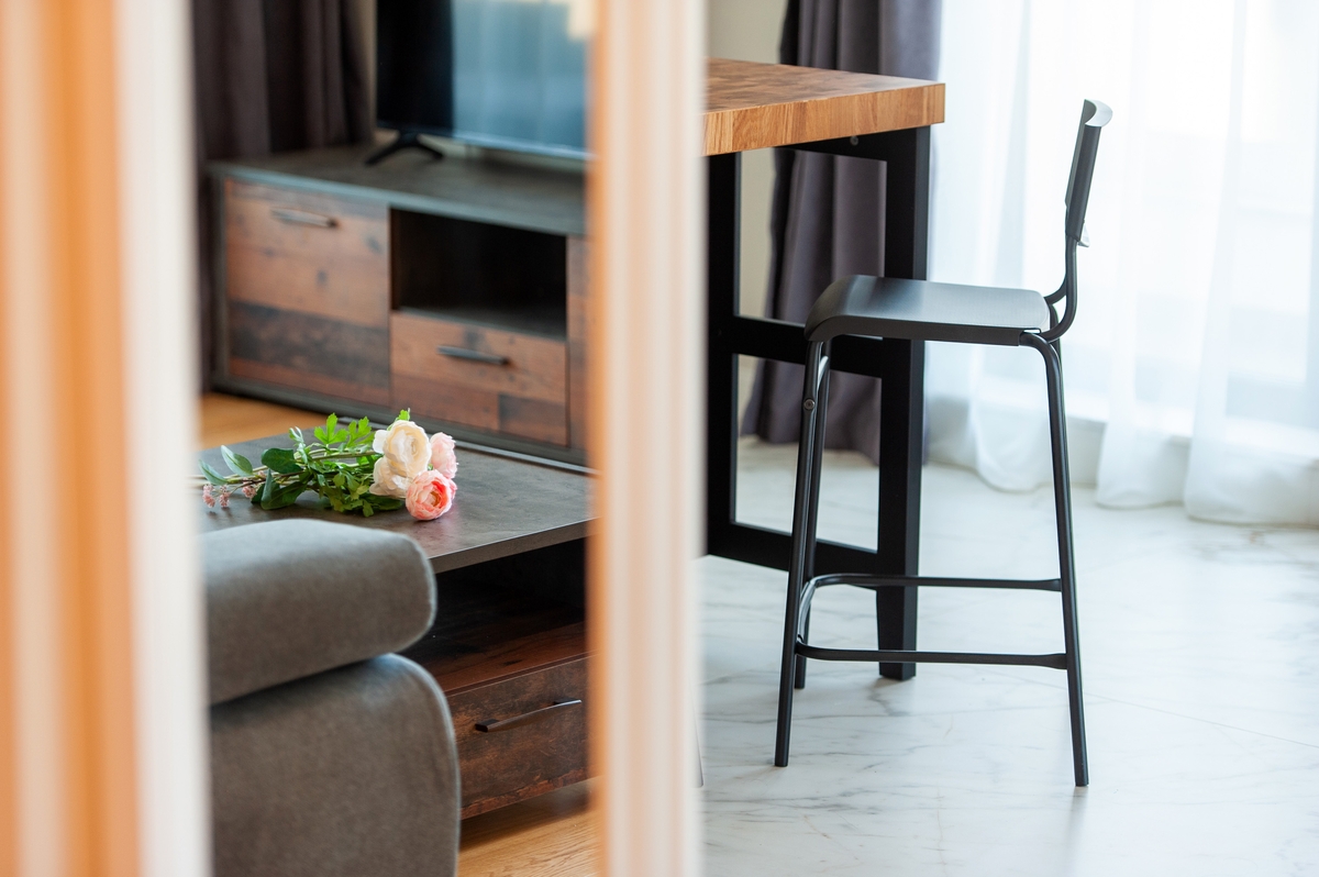 Bucatarie complet echipata: frigider, plita inductie, hota cu aerisire, masina de spalat vase