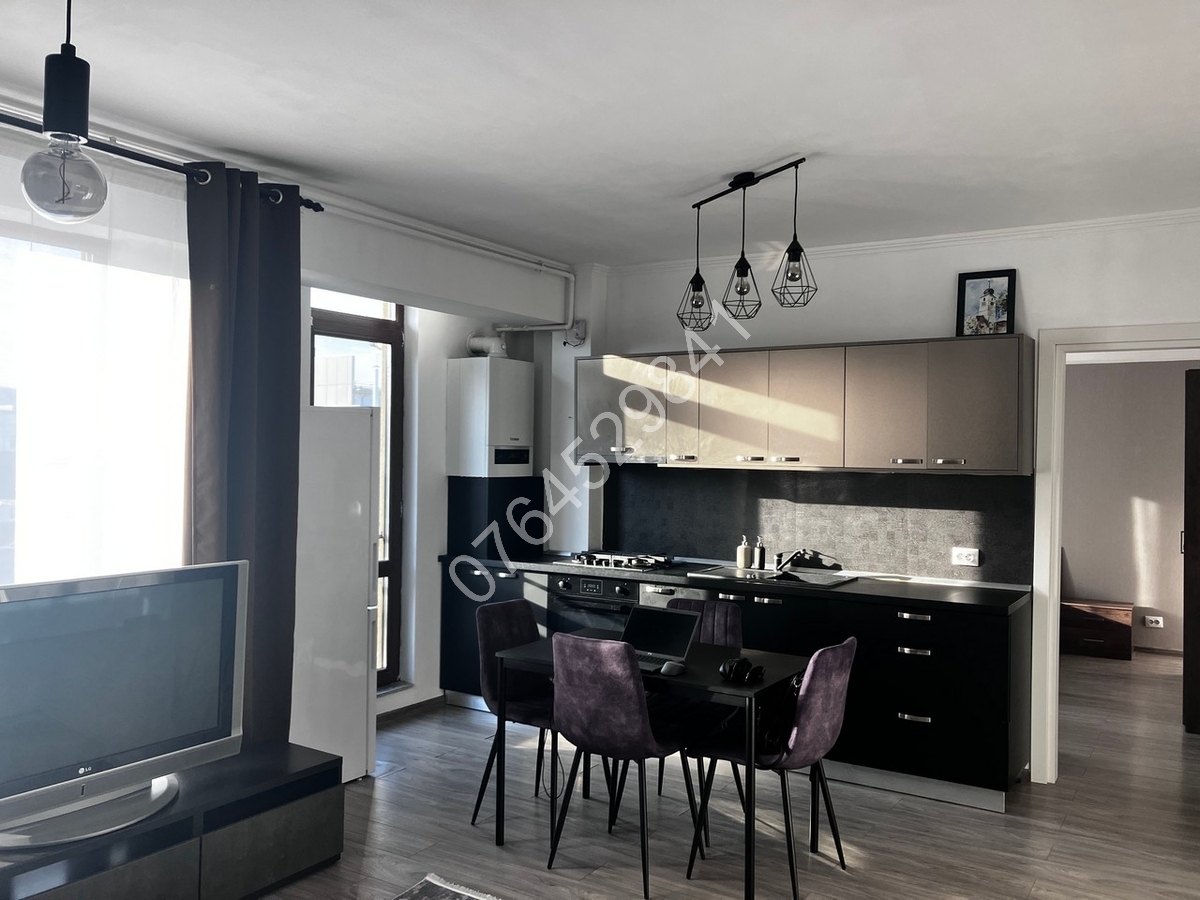 Balcon (generos 10m2) deschis tip terasa ,centrala termica (pe gaz) de apartament+termostat ambiental,aer conditionat,2 televizoare (1 tv smart+1 tv led),canapea extensibila+zona dining in living,pat matrimonial+dressing generos in dormitor,spatii depozitare (debara),plita pe gaz+cuptor electric+hota incorporate,combina frigorifica,masina de spalat rufe.
