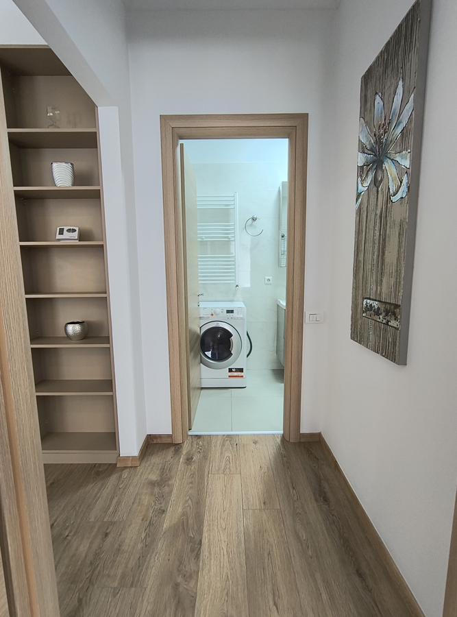 Apartamentul propus este situat la etajul 3, are o suprafata utila de 63 mp – 68 mp construit, din care o terasa de 13.8 mp. Este compus din living si bucatarie deschisa echipata complet (39 mp), cu iesire pe terasa spre lac, dormitor (14.7 mp), baie cu cada.