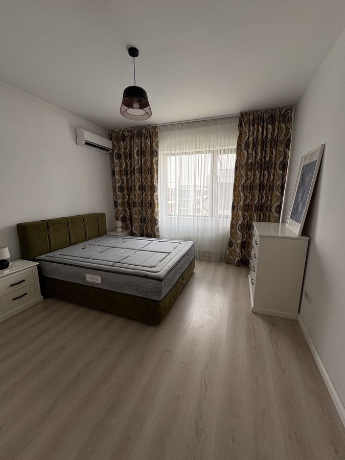 Apartament spre inchiriere utilat si mobilat complet, bloc nou, etaj 3/3: 2 dressinguri, frigider, plita, cuptor Grunding, hota, centrala apartament, 2 aparate de aer conditionat Beko, masina de spalat rufe Arctic. Contract energie electrica Enel si gaze naturale Premier Energy, cablu si internet DIGI. Living 30mp, bucatarie 10mp, dormitor 17mp, hol 11mp, terasa 10 mp. Loc de parcare, bloc cu lift, zona linistita, aproape de padure si Manastirea Cernica, acces rapid centura Bucuresti, magazin Mega Image la scara blocului.