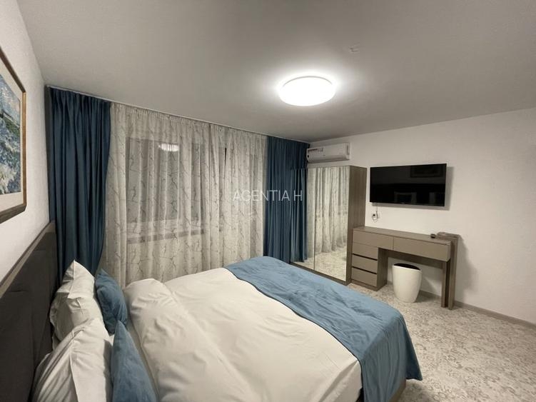 Apartamentul este mobilat complet, aer conditionat in fiecare dormitor, centrala termica de bloc, bucatarie mobilata si utilata complet, baie cu dus. Apartamentul are hol lucuibil fara living. Blocul se afla la 100m de intrarea in Parcul Cismigiu si se afla intr-o zona linistita si aproape de Ateneul Roman. Cele mai apropiate statii de metrou se afla in Piata Romana sau Izvor la 10 minute de mers pe jos