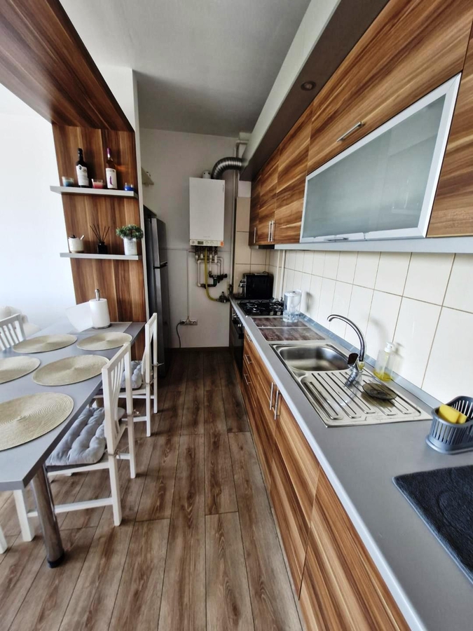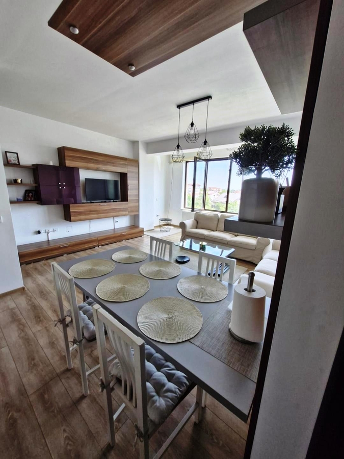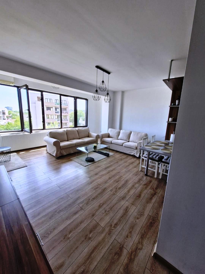 Va oferim spre inchiriere 2 camere cf 1 dec, liber, mobilat modern, utilat, gresie, faianta, parchet, termopan, ac, centrala termica. Apartamentul se afla la prima inchiriere.
