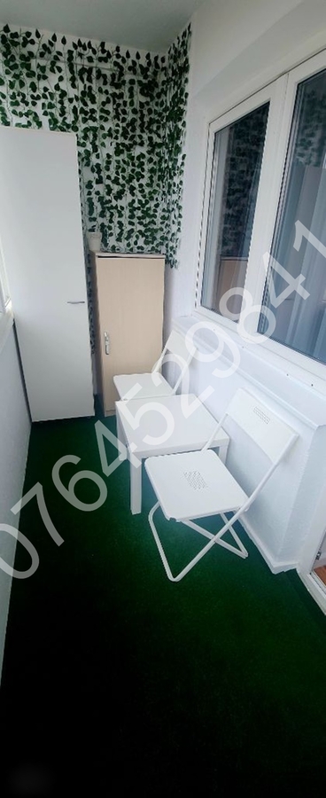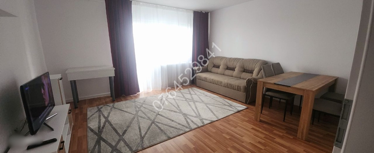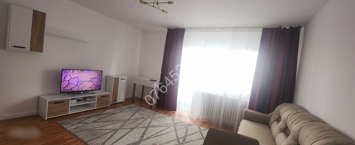 Balcon inchis in termopan,aer conditionat,televizor smart,canapea in living (la cerere se poate inlocuii cu o canapea extensibila),pat matrimonial+dressing generos in dormitor,spatii depozitare (debara),plita pe gaz+cuptor electric+hota incorporate,combina frigorifica,masina de spalat rufe.