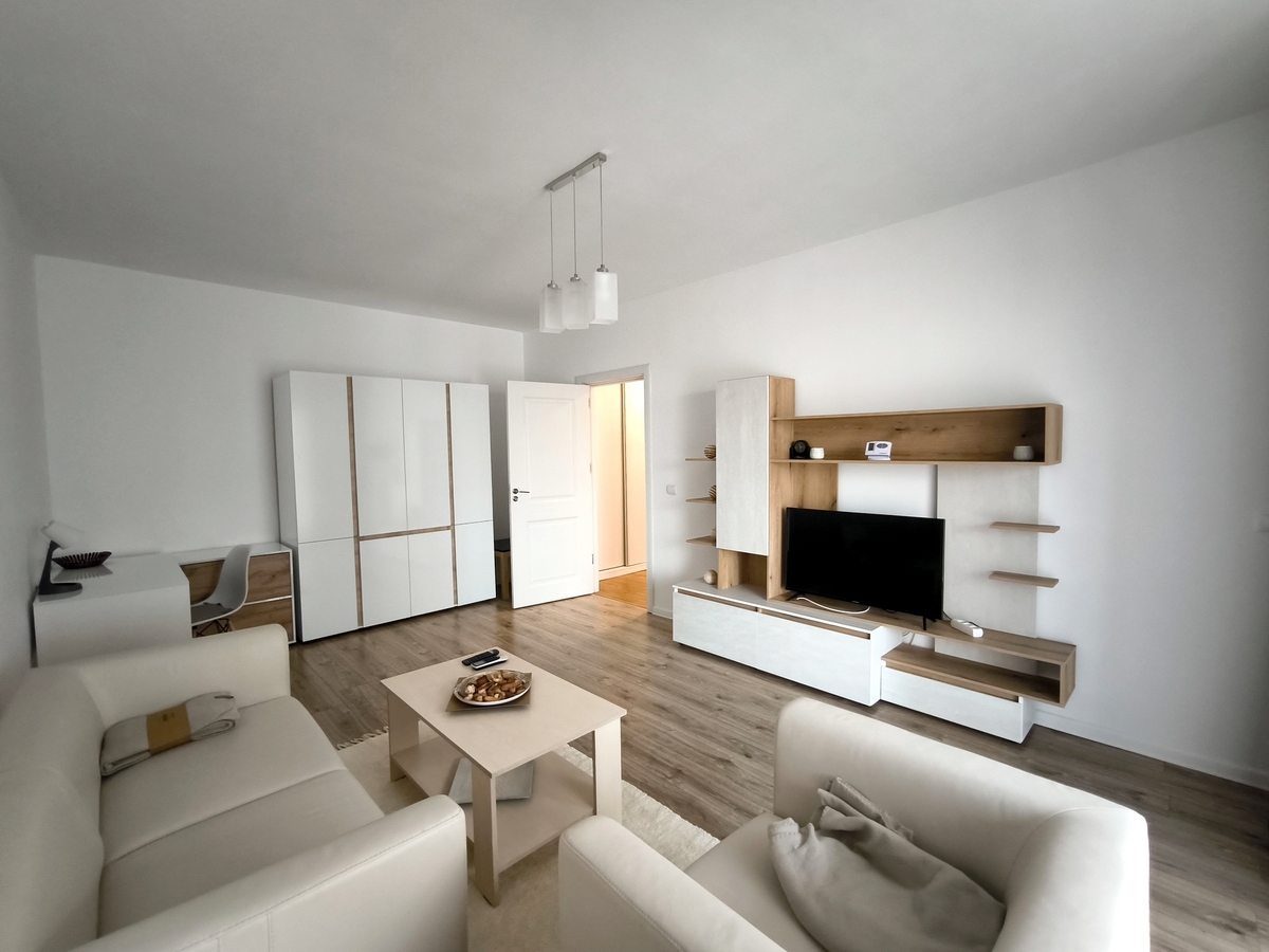 Aparamentul este complet mobilat si utilat, cu electrocasnice de calitate superioara (combina frigorifica, masina de spalat rufe, cuptor electric, plita, 2 aparate aer conditionat, smart tv).