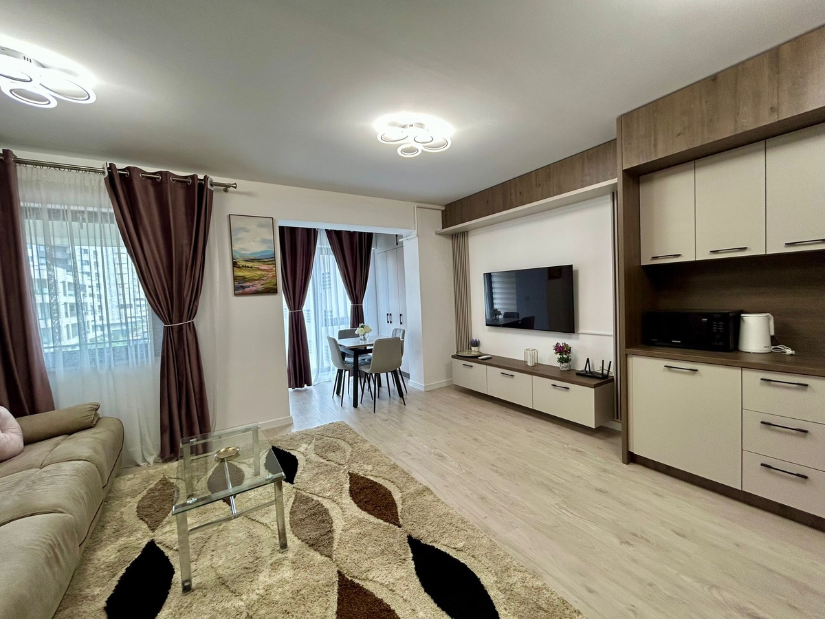 Va prezentam spre inchiriere un apartament modern cu 2 camere, situat in ansamblul Ivory Residence, recunoscut pentru standardele sale ridicate de calitate si confort. Locuinta are o suprafata utila de 58,29 mp, fiind ideala pentru cei care isi doresc un spatiu generos, elegant si bine compartimentat.
