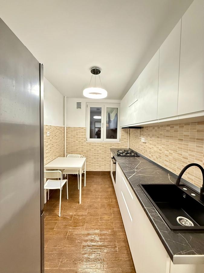 confort 1, semidecomandat, etaj 7/10, 55 mp, recent renovat, finisaje moderne, gresie, faianta, parchet din lemn masiv, termopan, usa metalica, mobilier pe comanda, dressing spatios, canapea extensibila, utilat complet cu: plita pe gaz, hota, cuptor electric, masina de spalat, TV, aer conditionat, balcon inchis in termopan, liber,