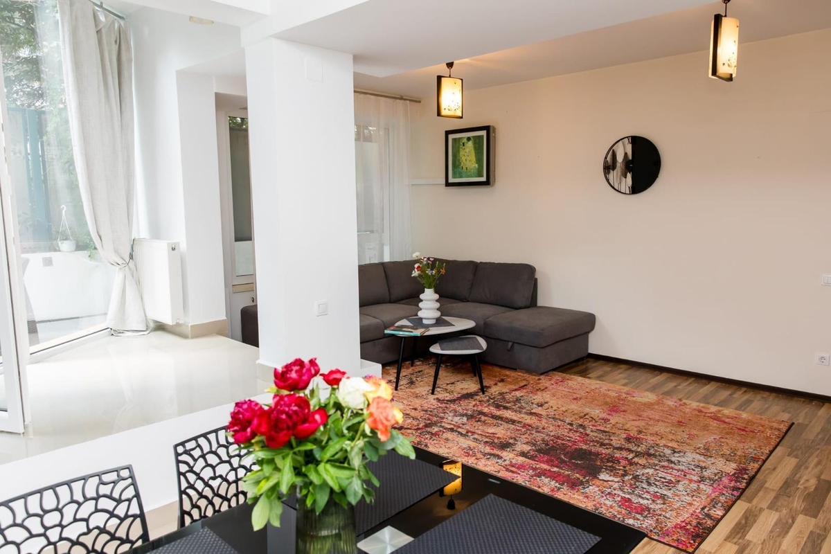 Apartamentul pe care vi-l propunem spre inchiriere, este elegant, cochet, cu o suprafata de 56mp, este mobilat (Mobexpert), utilat complet, si dispune de o terasa superba de 27mp. Blocul este tip boutique cu doar 6 familii. La doi pasi de Herastrau!