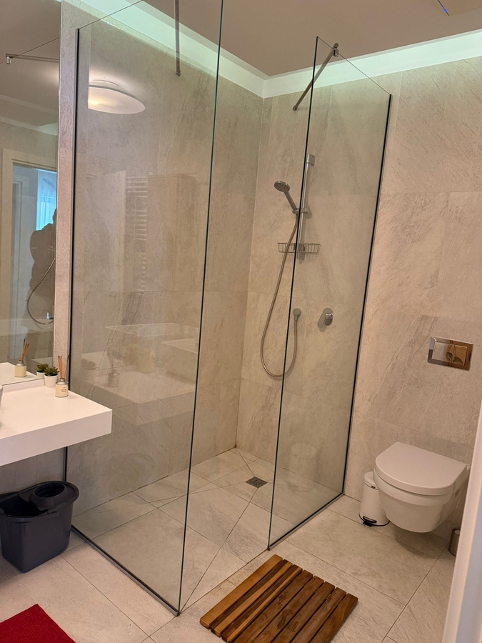 Imobilul are toate imbunatatirile, inclusiv Centrala Proprie de Apartament cu Incalzire in Pardoseala, Aer Conditionat in hol, camera si living pe chillere (ca la Mall), doua TV Smart, consumuri contorizate, Masina de Spalat Vase, plita, cuptor electric, hota, Instalatii Noi, cablu, internet wifi, mobilat si utilat complet, Absolut Totul Nou, Exista multiple spatii de depozitare.