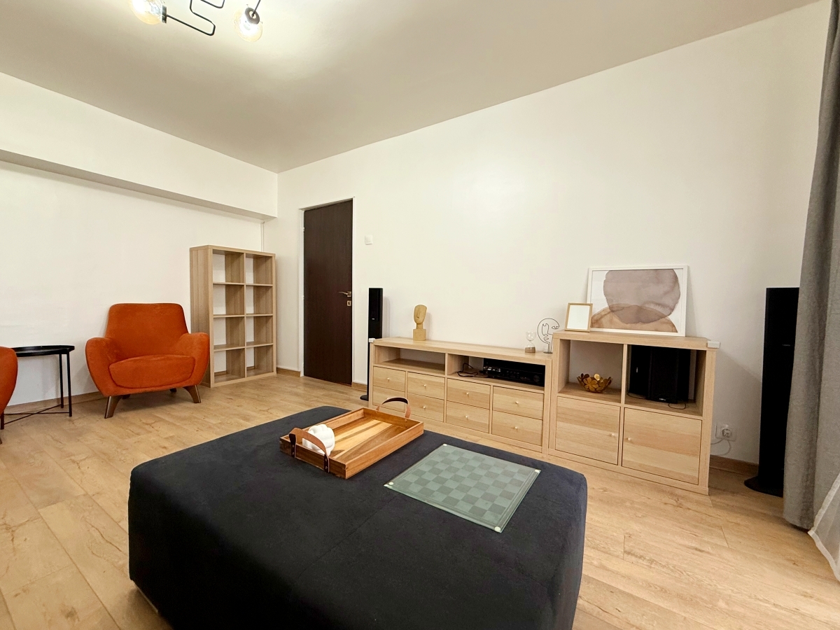 Canapeaua din living este extensibila, perfecta in cazul unor musafiri.