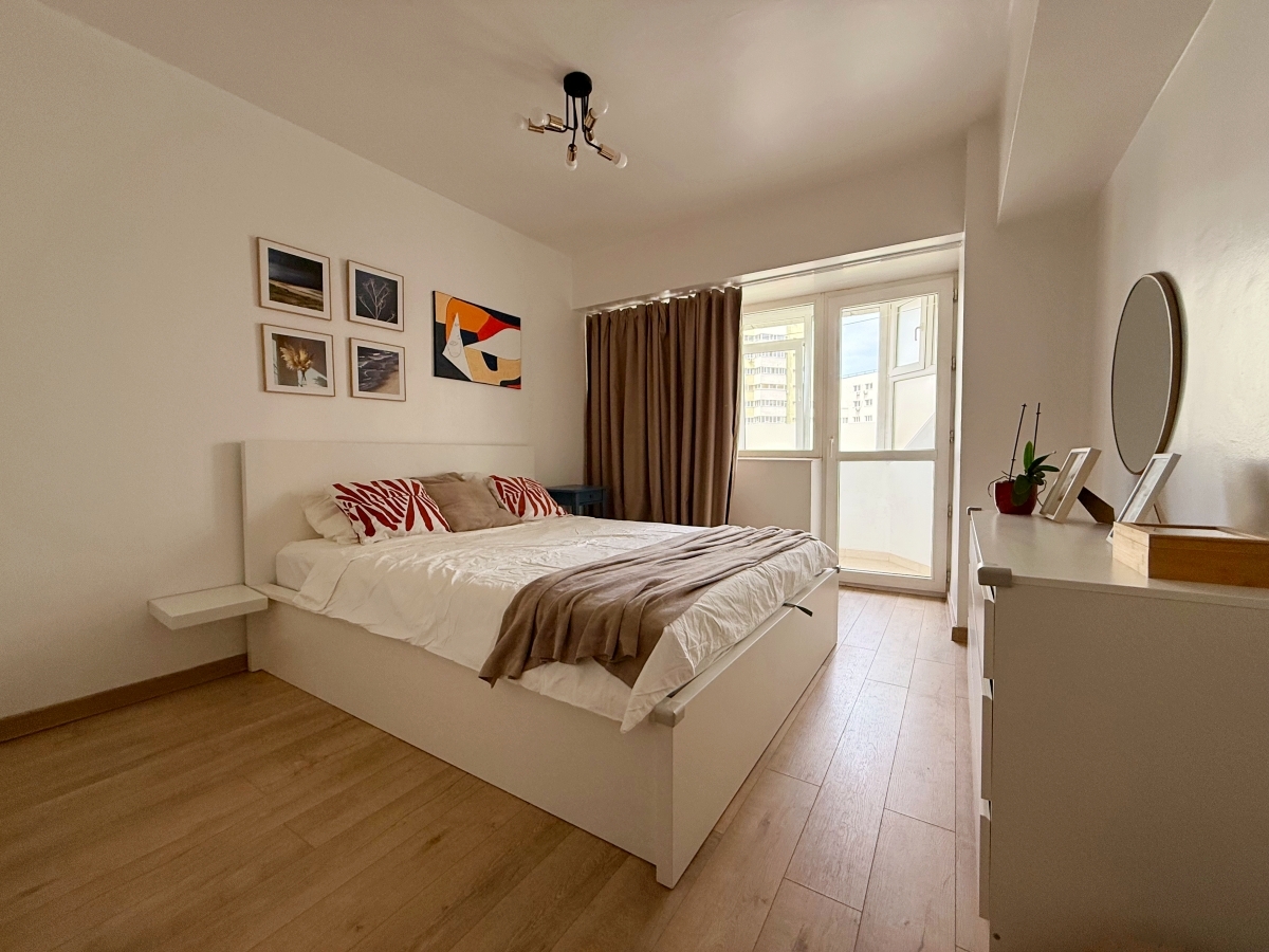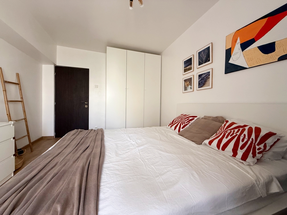 Patul din dormitor are 160x200cm si este dotat cu spatiu de depozitare.