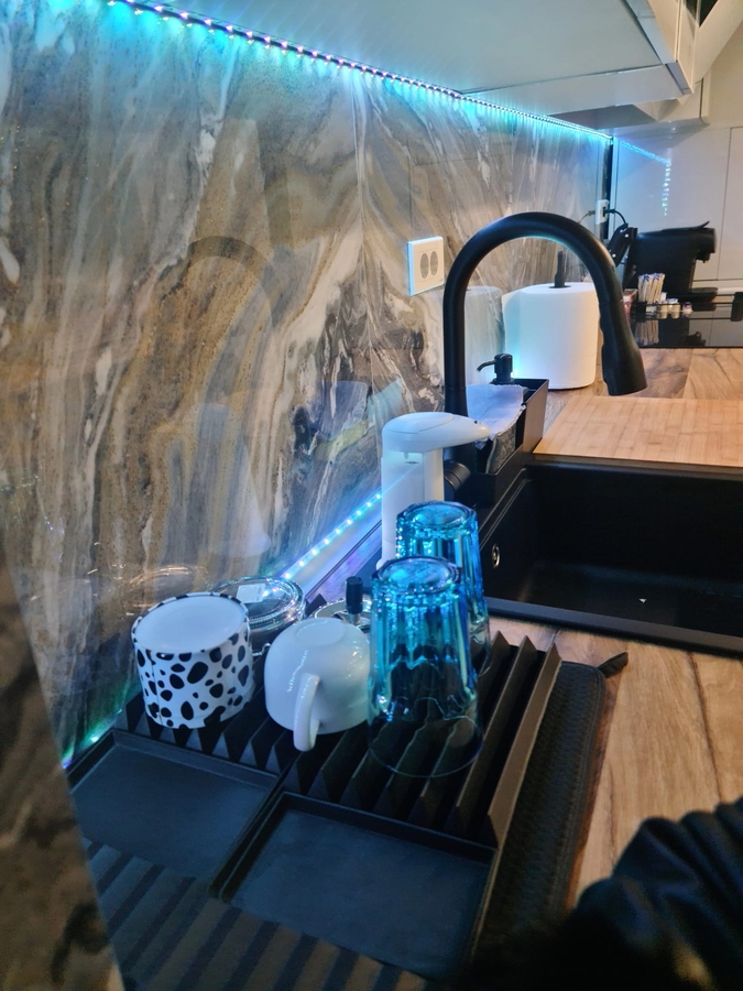 bucatarie moderna complet utilata (plita, cuptor, hota, frigider, masina de spalat);