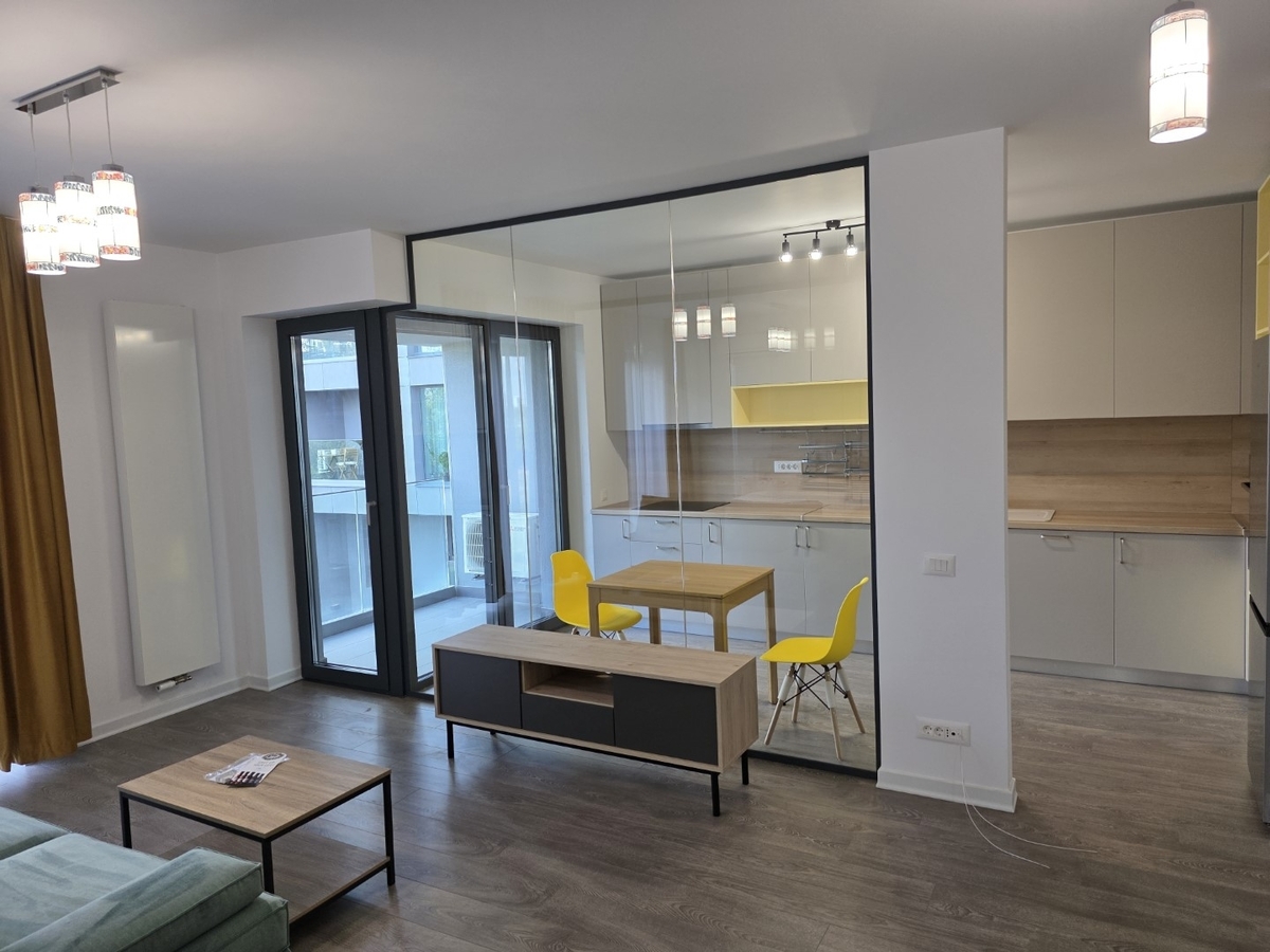 complexul Cloud9 Residence, intr-un bloc nou la etajul 1. Apartamentul este open space, compet renovat, mobilat si utilat modern, are gresie, faianta, parchet, termopane, usa metalica, aer conditionat si este intr-o stare foarte buna. Apartamentul dispune de loc de parcare.