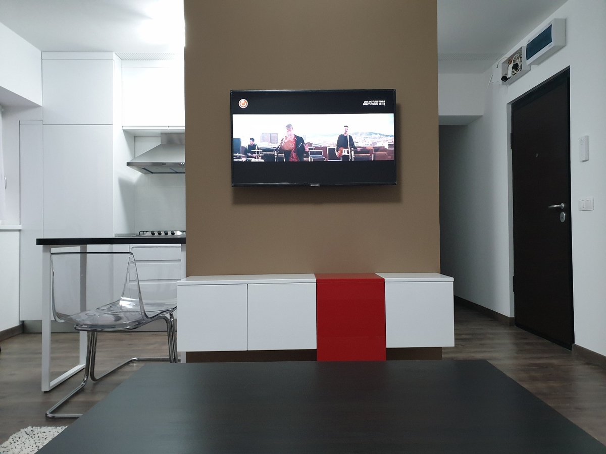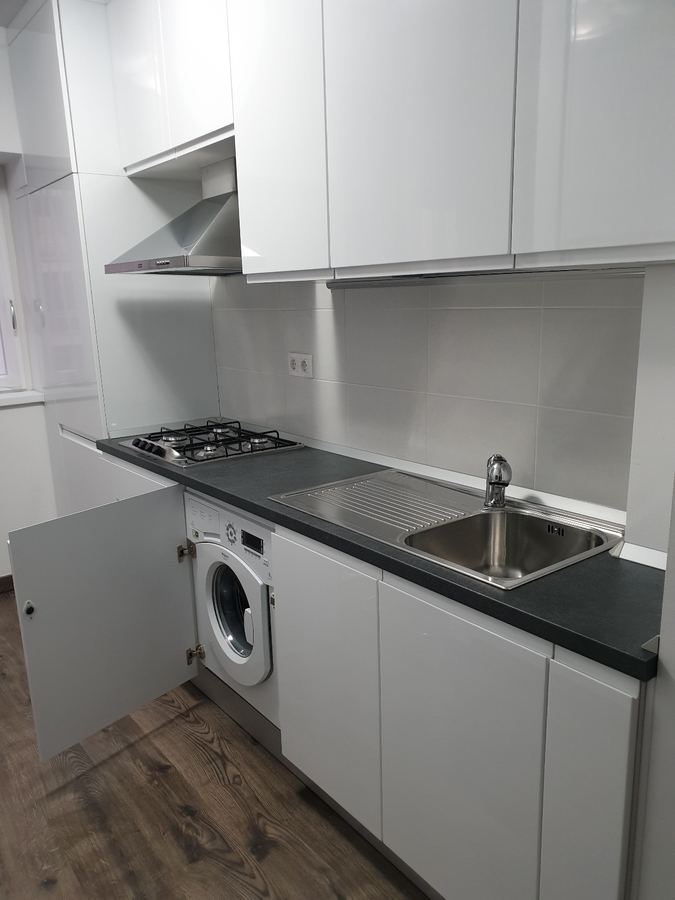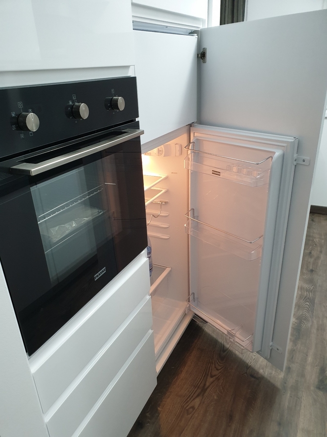 Bucatarie complet echipata (plita, cuptor, frigider incorporat)