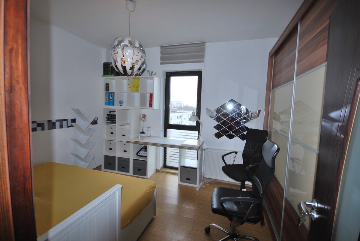 2 camere, 65 mp, 5/10. Detine terasa de 16 mp si loc de parcare. Este utilat si mobilat modern. Chirie 650 euro lunar + 1 luna garantie.