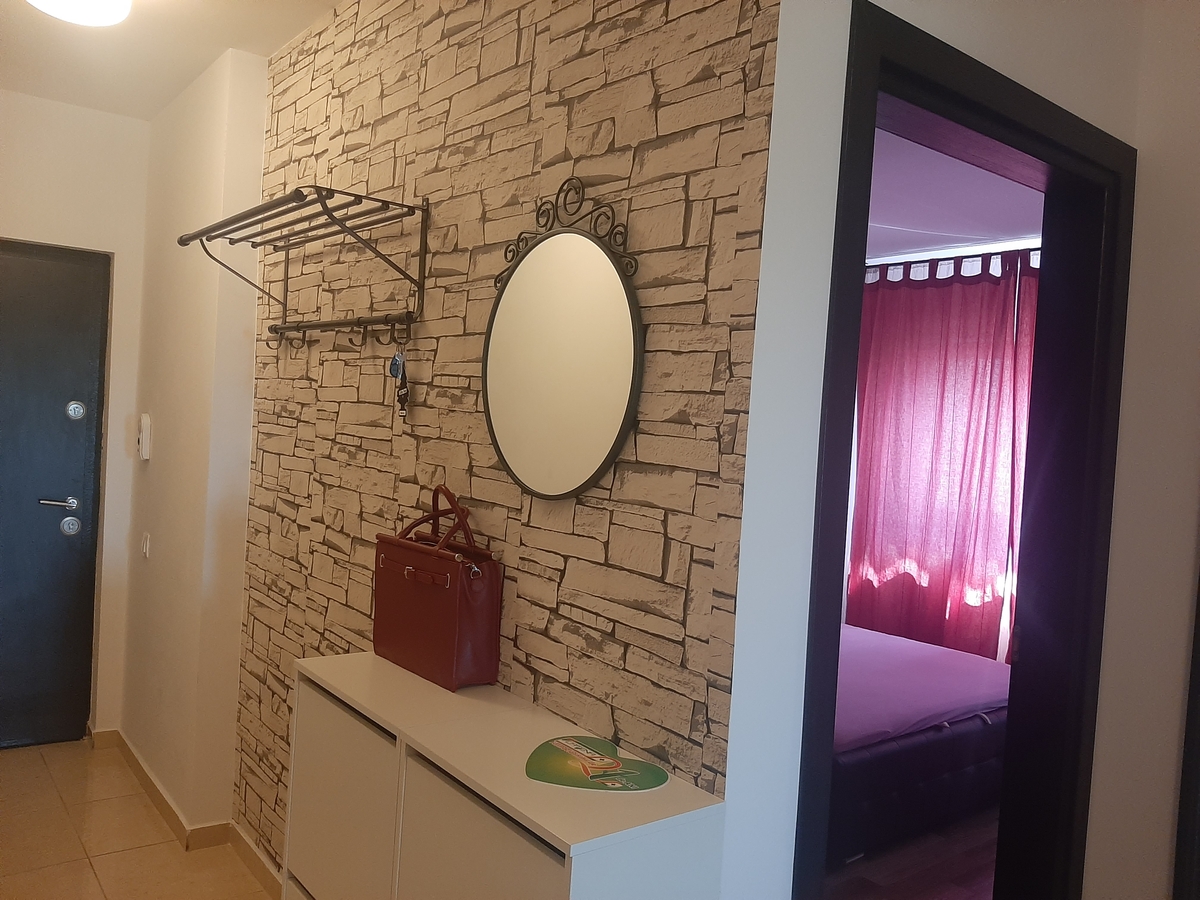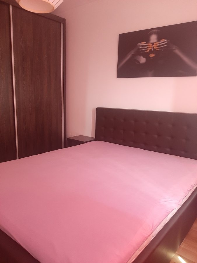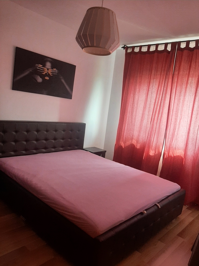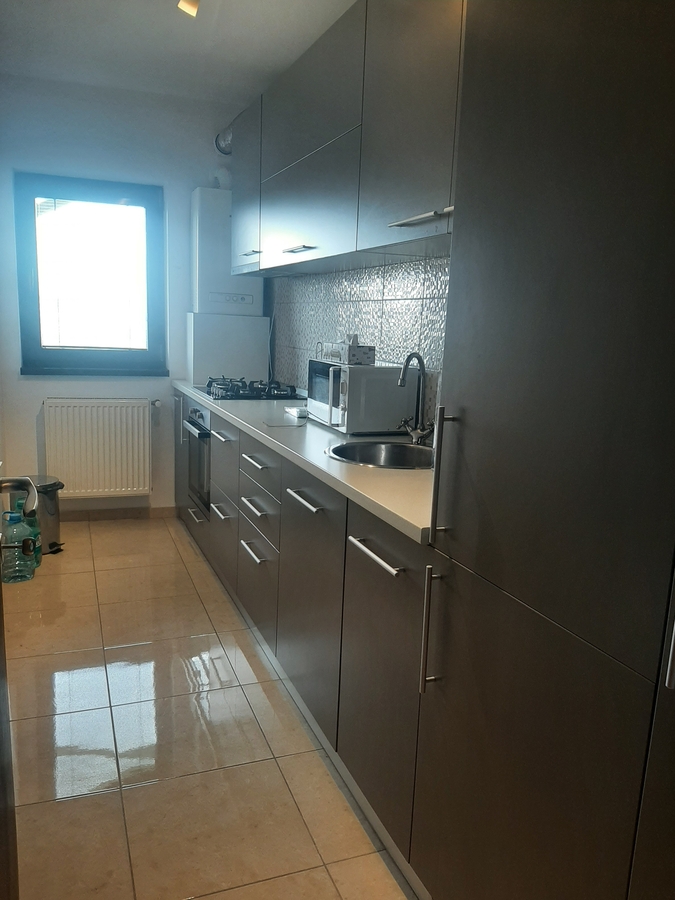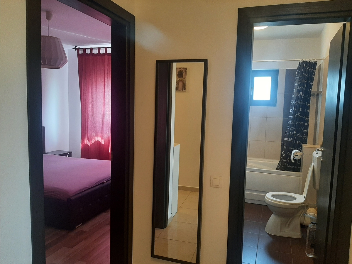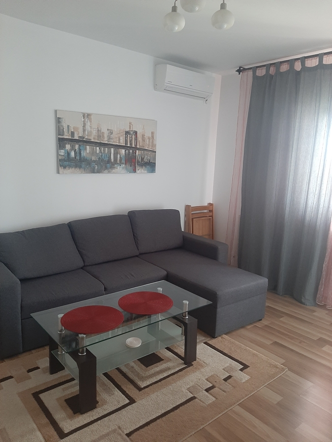 Apartament cu doua camere decomandate situat intr-un cartier rezidential, intrare pe cartela, camera de supraveghere video la etaj 4, mobilat modern, are centrala proprie, contor de gaze la usa, g+f+tm+p, canapea extensibila, pat matrimonial, tv, dressing, cuptor cu microunde, aer conditionat, geam la baie. Contract la ANAF.