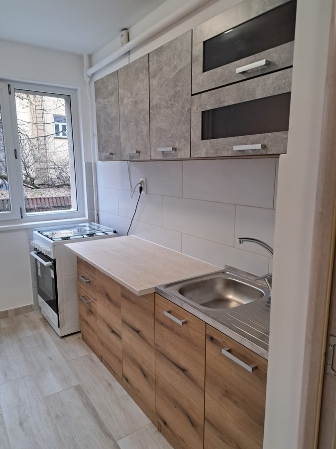BCR, 2/10, cf.1, nemobilat, bucatarie mobilata, utilata, gresie, faianta, parchet, termopan, usa metalica, masina de spalat, bloc in reabilitare termica, contract ANAF, liber,