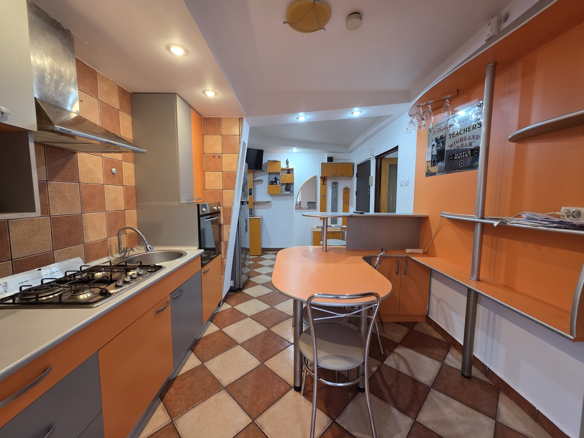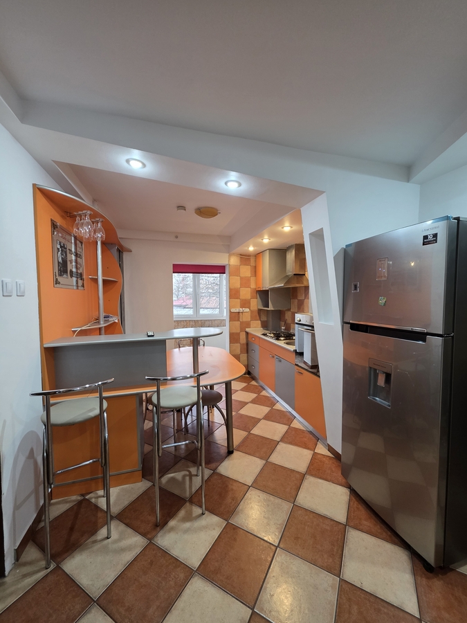 Complet mobilat si utilat – mobila moderna, electrocasnice incluse (frigider, aragaz, cuptor, masina de spalat, centrala proprie, etc.)