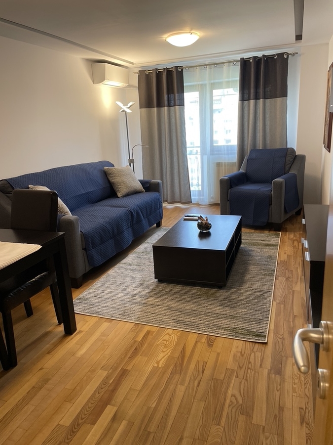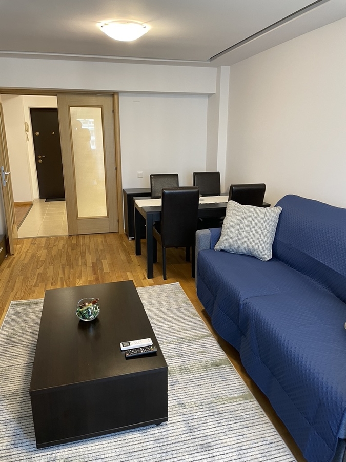 Apartamentul este renovat, decomandat, cu bucatarie inchisa, aproape nou si este mobilat si utilat: frigider, masina de spalat, aer conditionat, plita gaze, cuptor electric, TV in living si dormitor, internet, cablu si WiFi). Apartamentul are 3 balcoane cu vedere la bulevardul Unirii, iar balconul de la bucatarie este inchis cu tamplarie PVC si geam termopan.