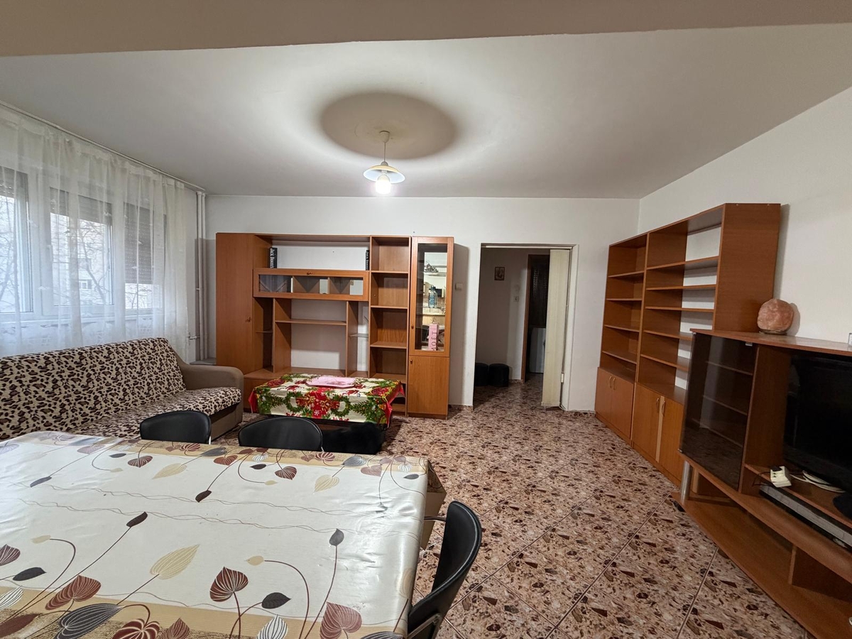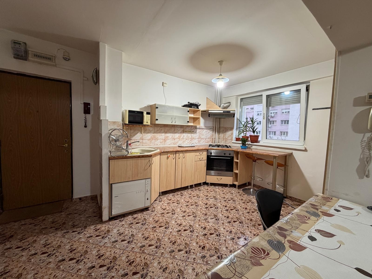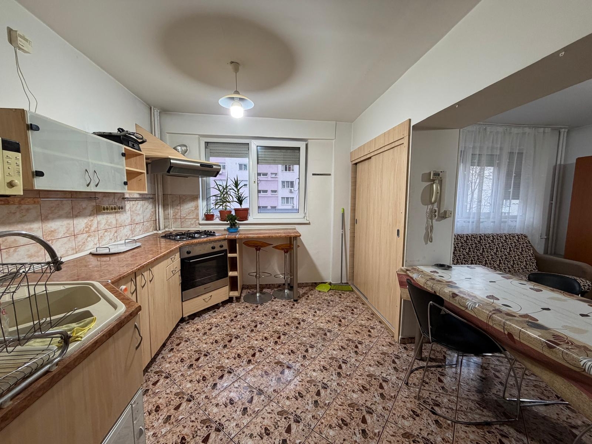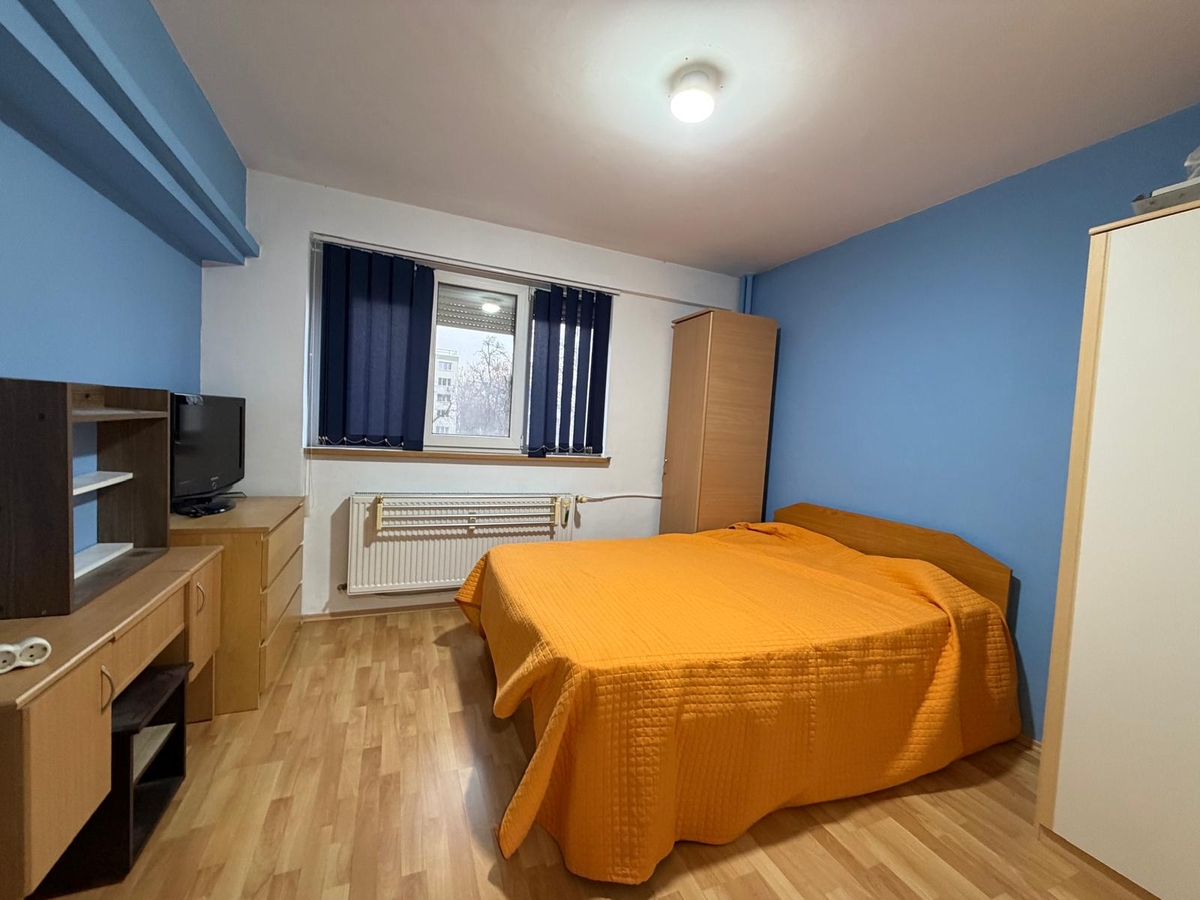 3 camere, etajul 1/10, bloc reabilitat, vedere mixta, dormitor 18 mp, curat, liber, mobilat si utilat, 1 minut piata Trapezului, MEGA IMAGE. GEAM LA BAIE