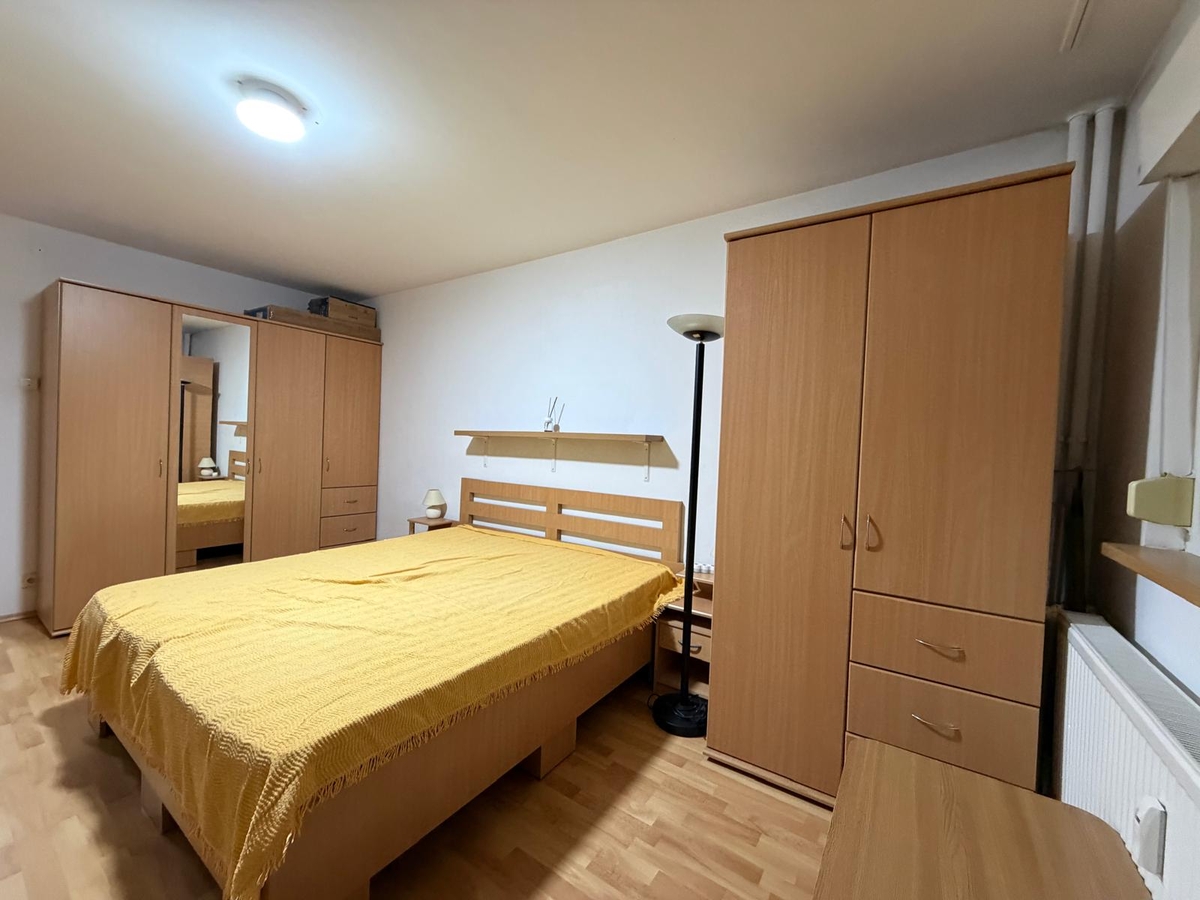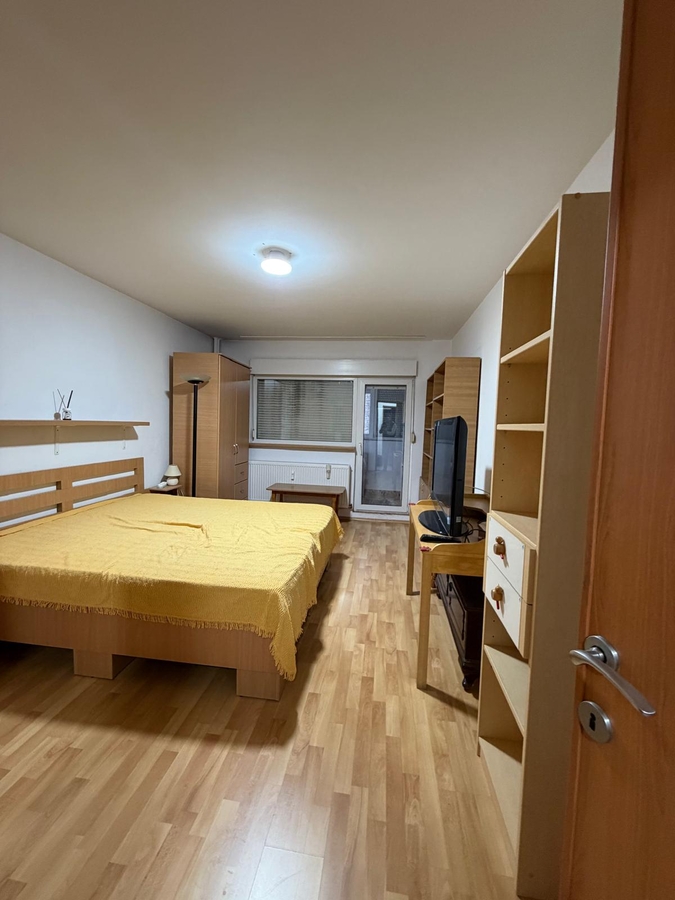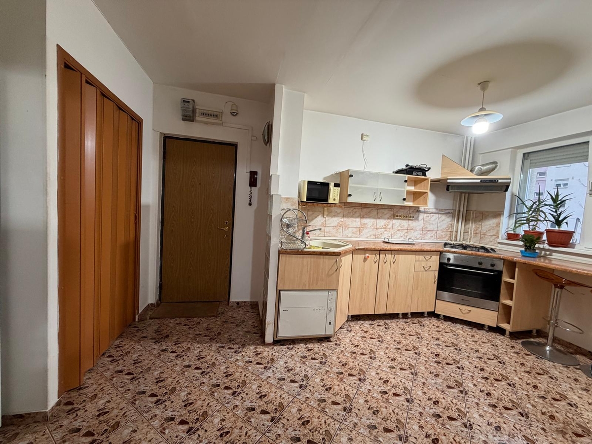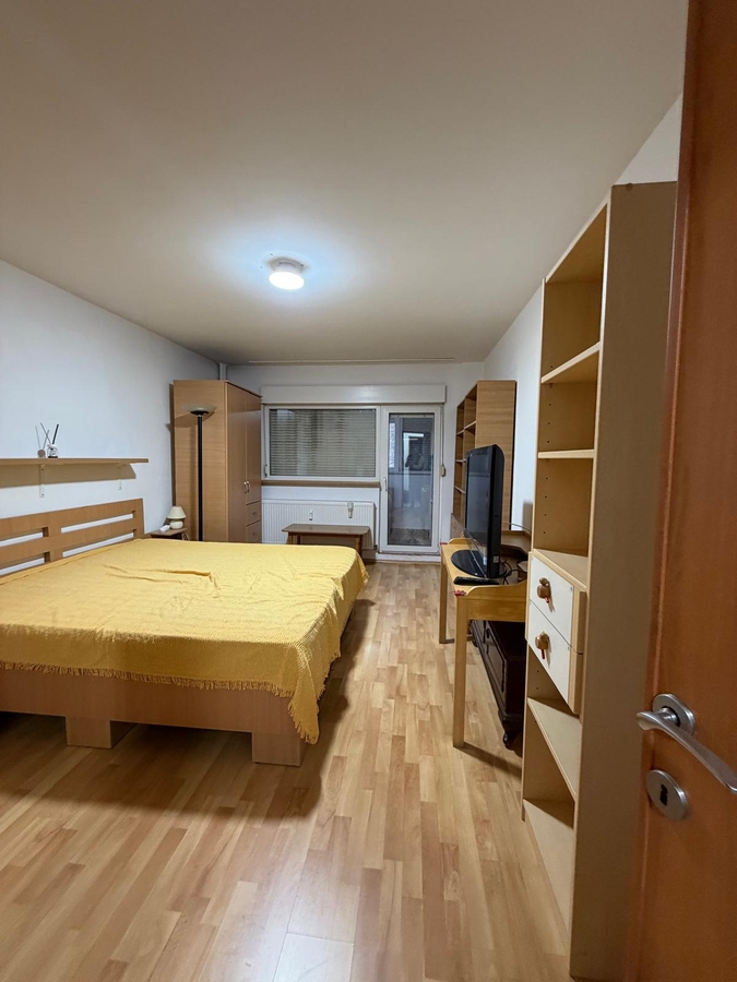 3 camere, etajul 1/10, bloc reabilitat, vedere mixta, dormitor 18 mp, curat, liber, mobilat si utilat, 1 minut piata Trapezului, MEGA IMAGE. GEAM LA BAIE