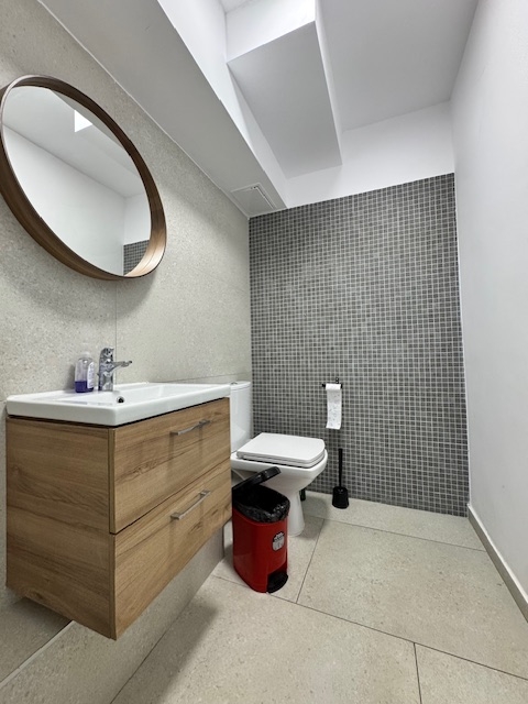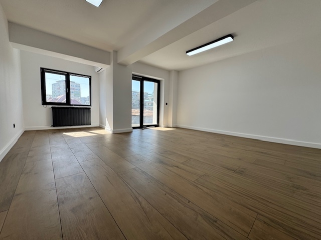 3 camere, 133 mp, etaj 3/5, 2 grupuri sanitare, vedere mixta, liber. Tot imobilul este inchiriat doar la firme, la demisol spatiul este amenajat pentru personalul cladirii, fiind o zona de luat masa. Apropiere metrou 1 Mai.