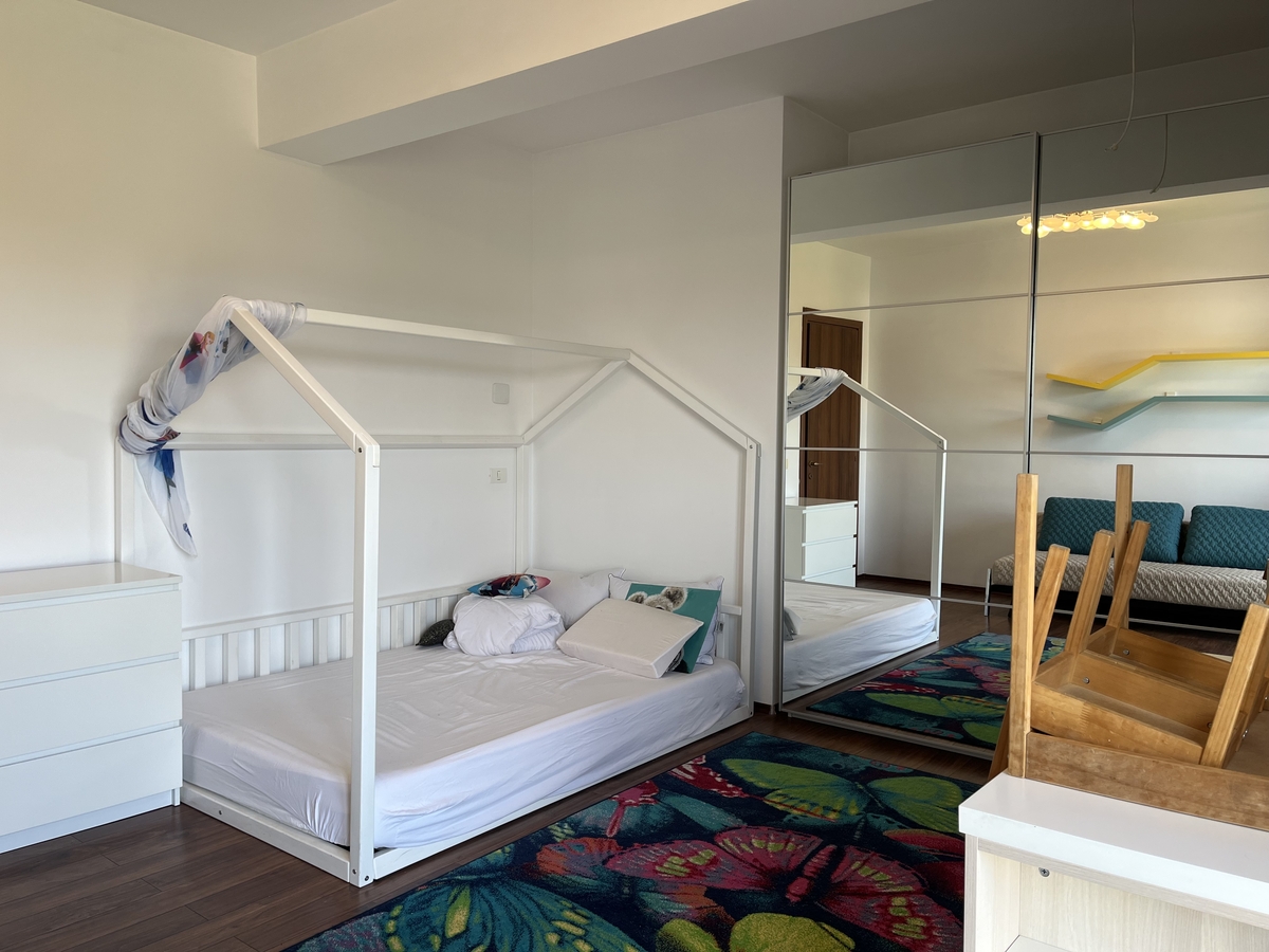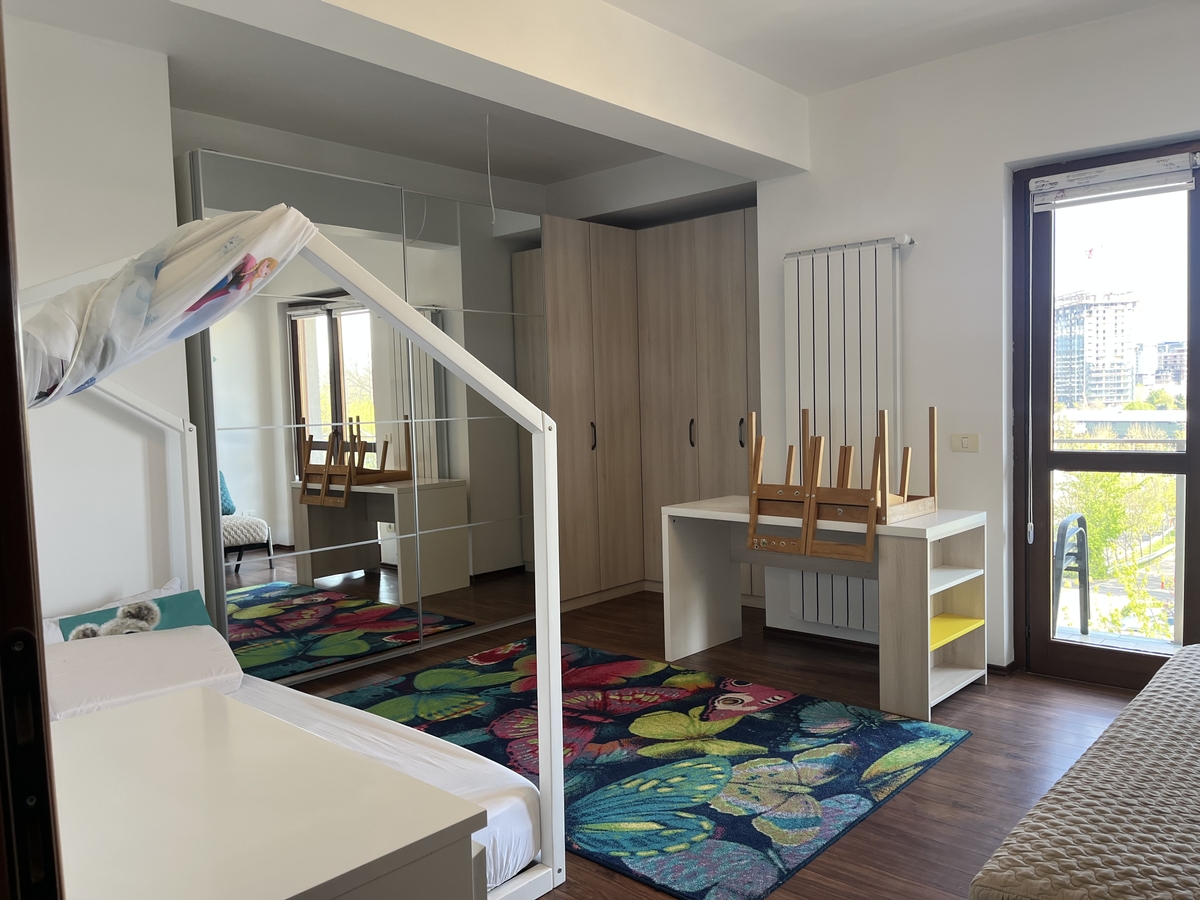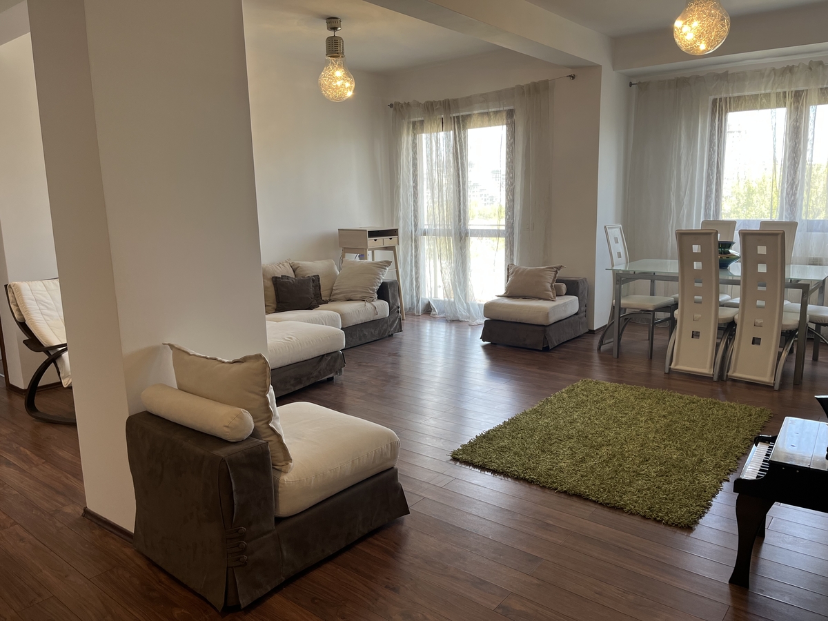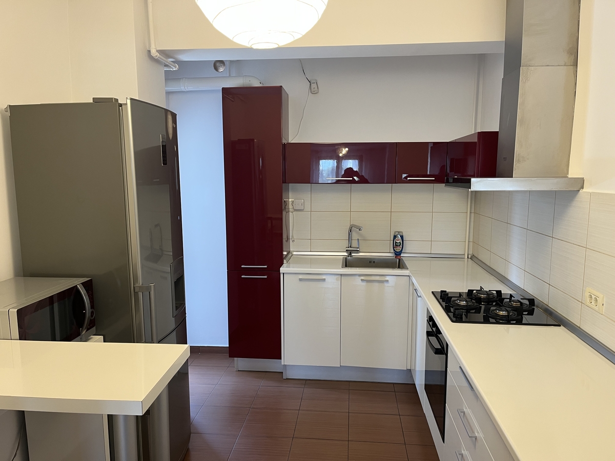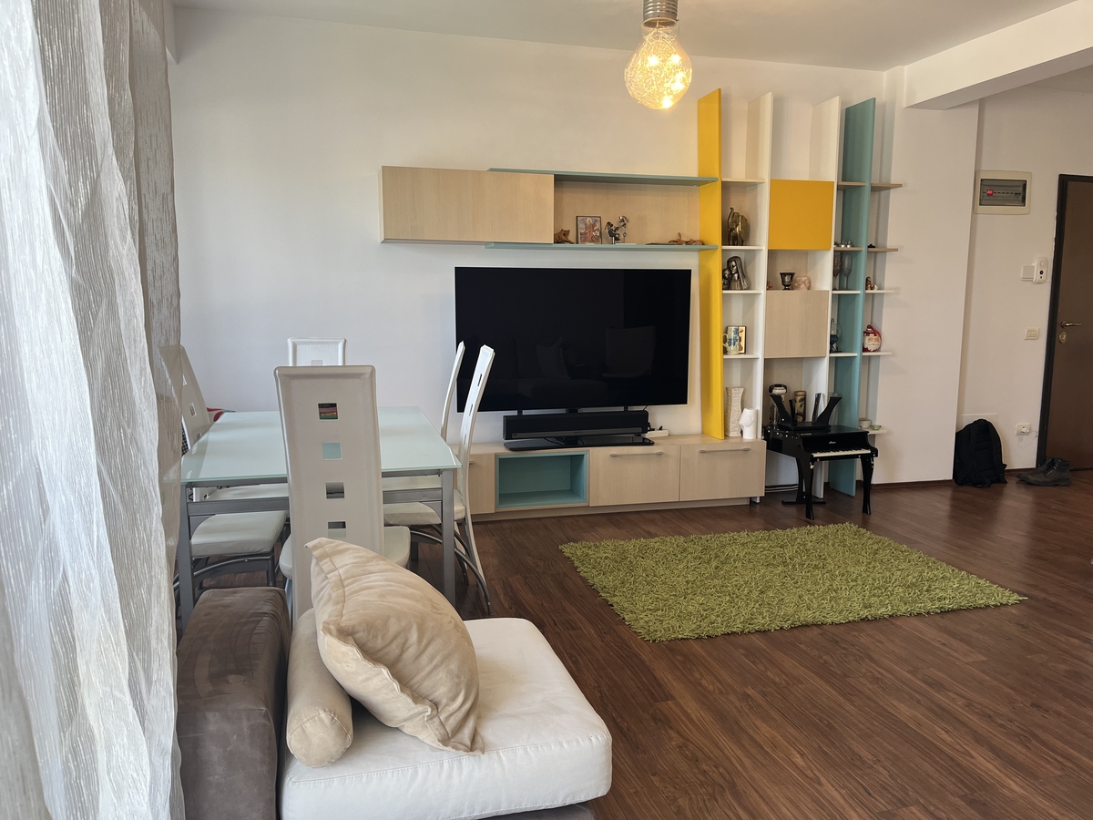 semidecomandat, situat la etajul 2 al unui imobil S+P+7, an constructie 2010. Apartamentul are o suprafata utila de 95 mp+ 2 balcoane de 10 mp, 2 bai. A fost recent igienizat, se inchiriaza mobilat si utilat complet, are centrala proprie de apartament, sistem de reglare a temperaturii din orice camera, 2 aparate de aer conditionat controlabile de la distanta, bucataria mobilata si utilata complet, masina de spalat vase, cuptor electric, plita pe gaz, hota, masina de spalat rufe cu uscator,