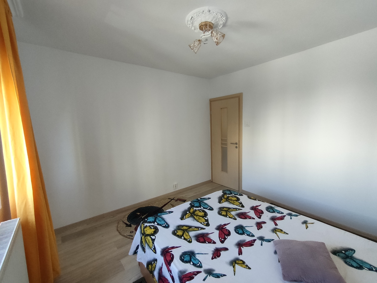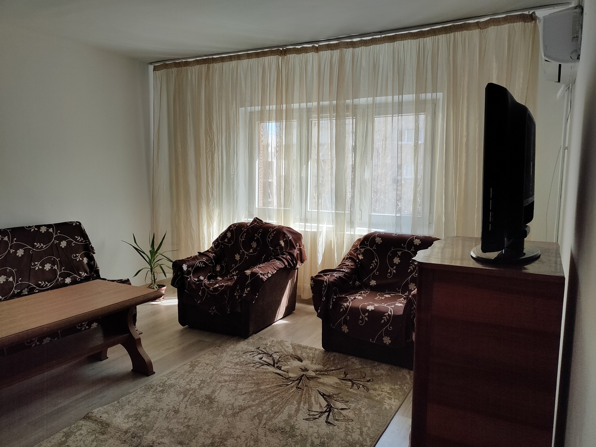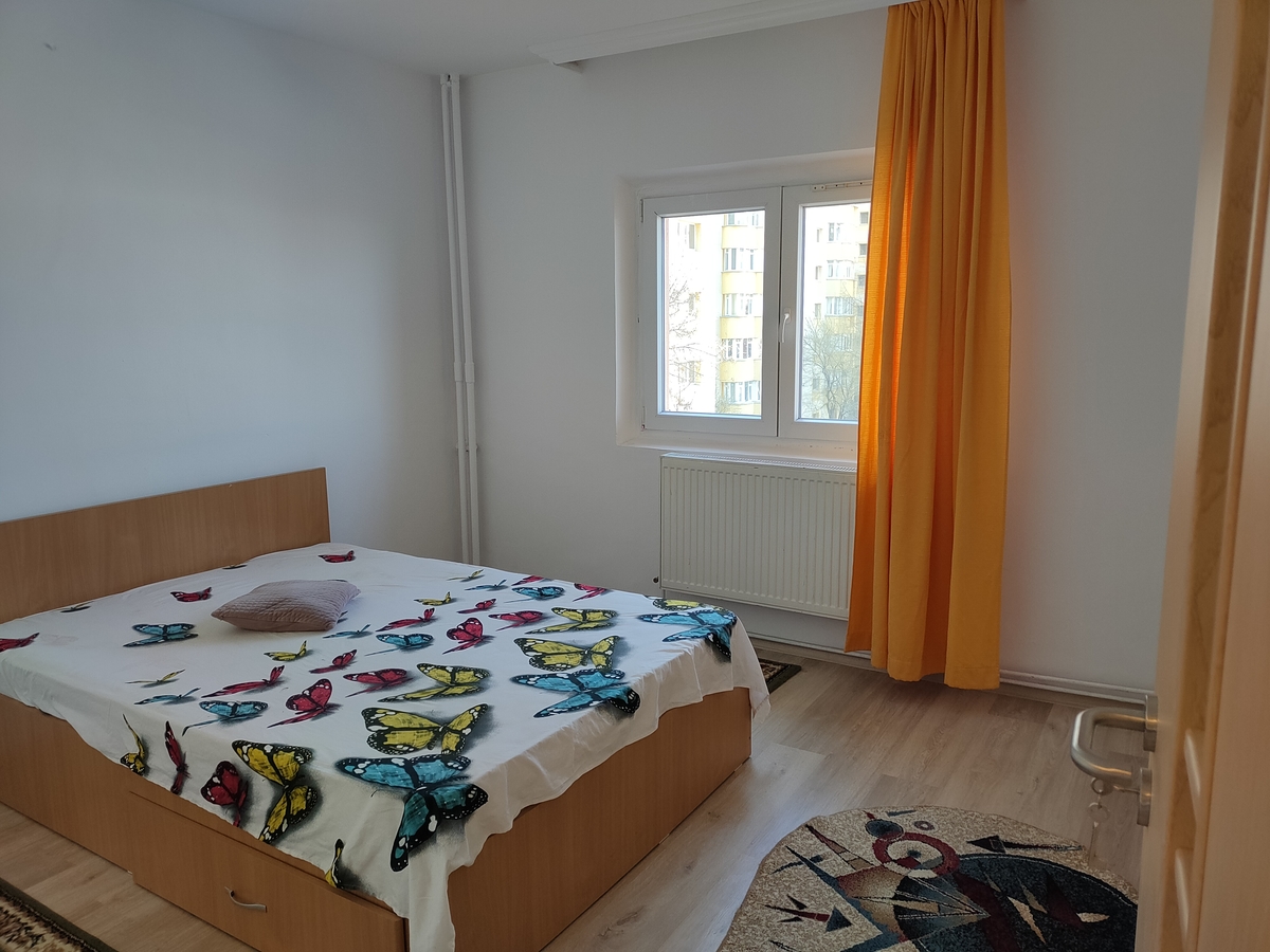Proprietar, etaj 3/8, confort 1, zugravit acum, usi si parchet noi, apometre, centrala termica, gresie, faianta, termopan, usa metalica, 2 gr. sanitare, masina spalat, frigider, tv, bucatarie 10 mp, 1+1 luna, parcare in zona