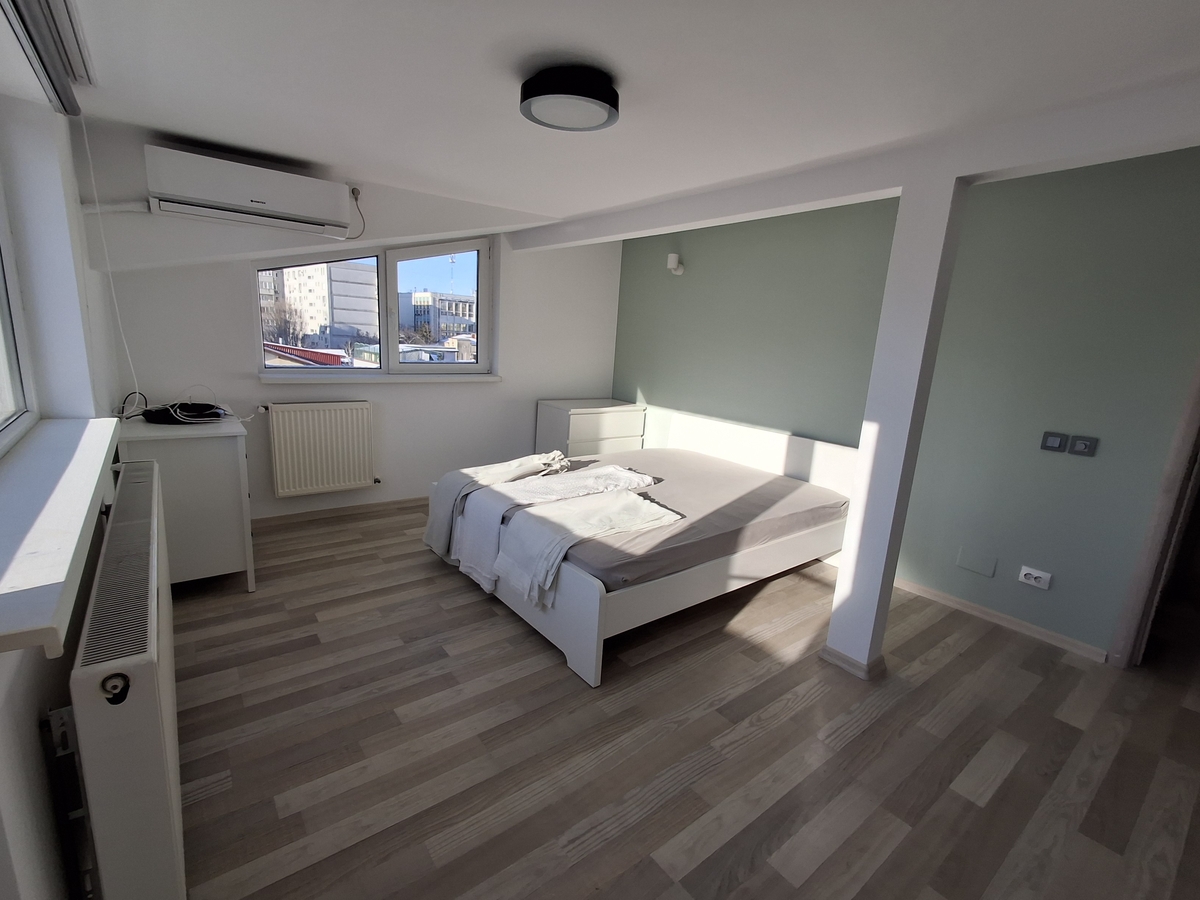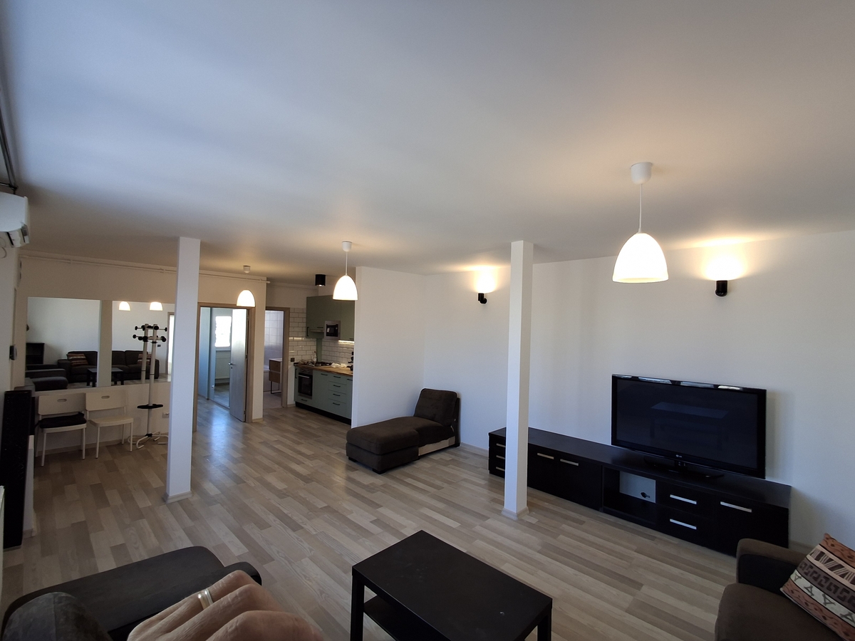 Apartament superb, complet renovat, la etajul 4 din 4, fara lift, mobilat si utilat nou–nout. Prima inchiriere. Living open space de 36 mp cu bucatarie noua incorporata, camera de 14 mp, camera de 12 mp, doua bai de 6 mp si de 4 mp, balcon de 6 mp.