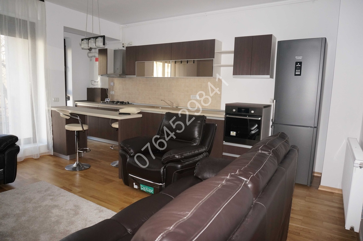 Balcon deschis tip terasa, 2 bai (1 baie cu cada + 1 baie cu cabina de dus), centrala termica (pe gaz) de apartament + termostat ambiental, aer conditionat, televizor smart, canapea + 2 fotolii + zona dining in living, pat matrimonial in dormitorul 1, canapea extensibila + zona birou work from home in dormitorul 2, dressing-uri, spatii depozitare, plita pe gaz + cuptor electric + hota + masina de spalat vase incorporate, combina frigorifica, masina de spalat rufe, supraveghere video.