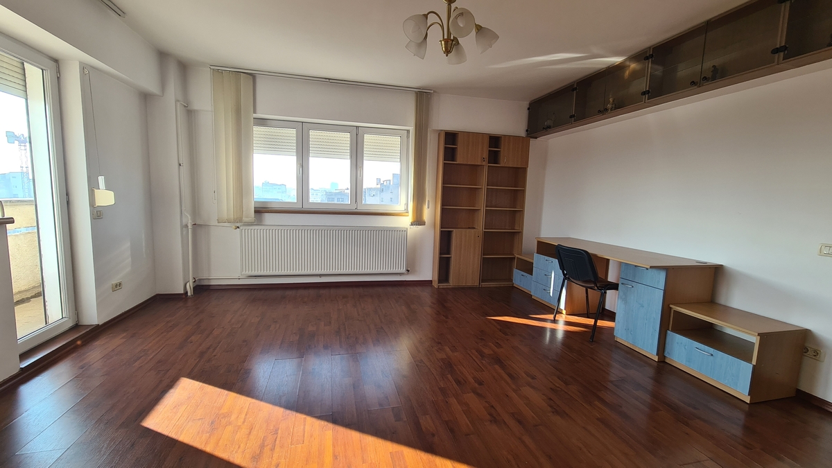 Apartamentul este compus din 3 camere (25, 17, 12 mp), hol + bucatarie (20 mp), 2 grupuri sanitare, hol intrare, 2 balcoane si are o priveliste minunata peste trei sferturi din Bucuresti (orientare pe colt catre sud, avand 2 dintre laturi spre est si vest)