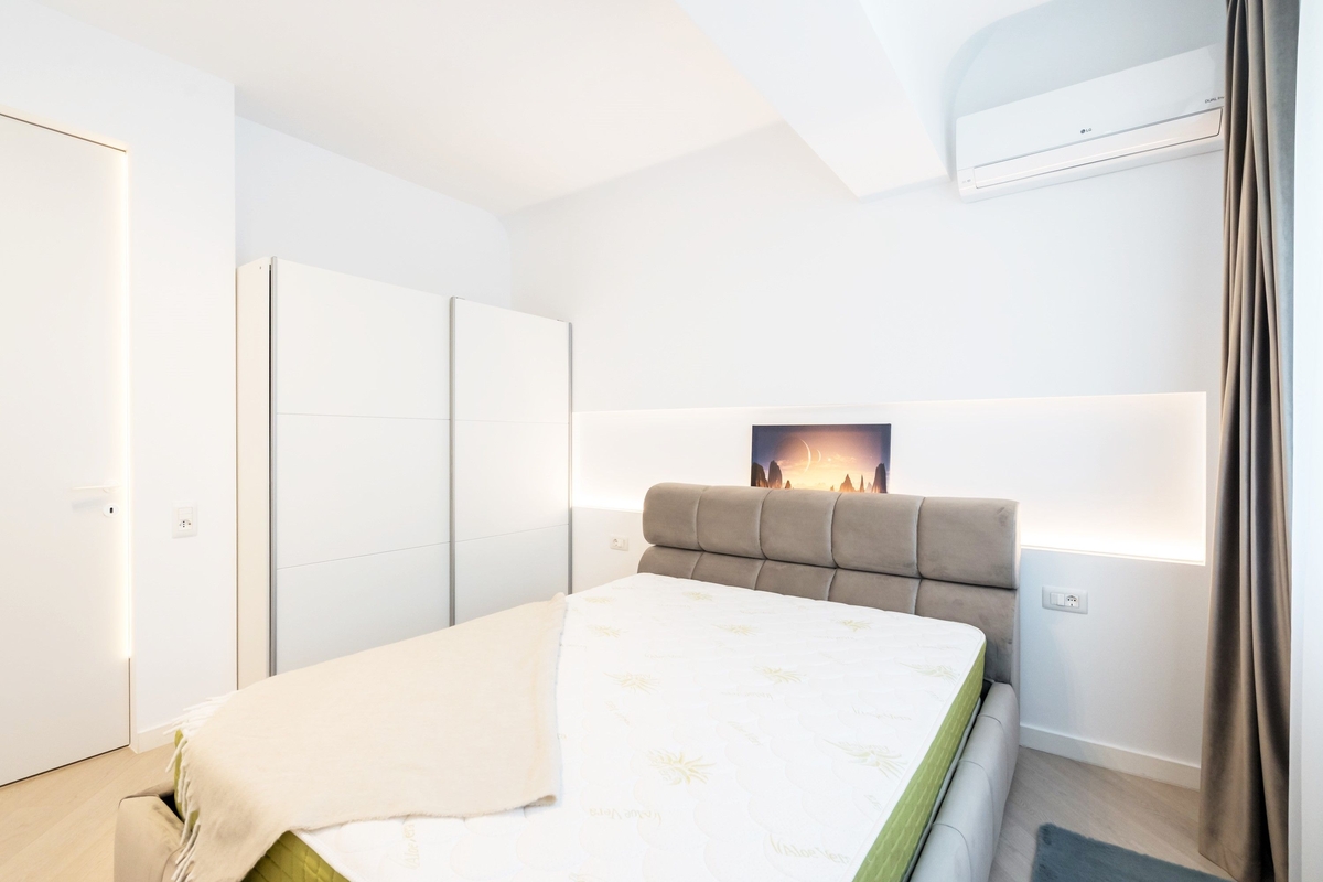 Avem placerea sa va prezentam, cu 0% COMISION pentru chirias, un apartament de 3 camere superb mobilat si utilat, cu mobilier exclusivist de calitate superioara Mobexpert si Rovere, cu atentie la fiecare detaliu ales cu grija si la standarde inalte, dispunand de loc de parcare in garaj subteran si de o pozitie exceptionala in Nordul Capitalei, la doar 5 min de Promenada Mall, in complexul rezidential Cortina North by Eden Development, complex inchis ce dispune de paza si supraveghere continua.