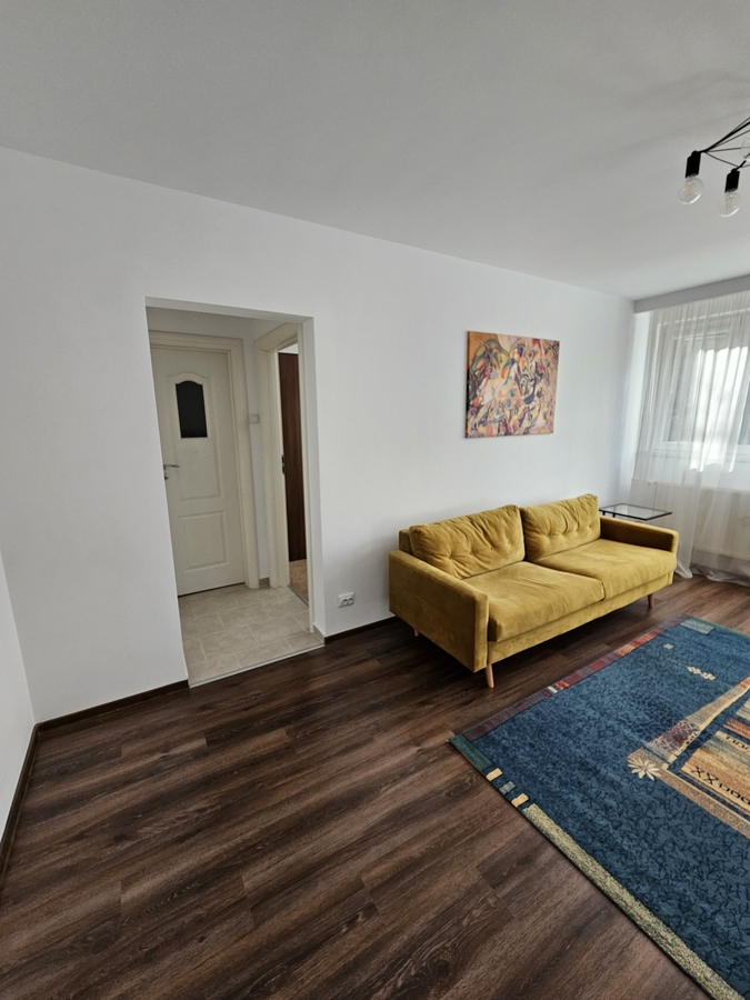 Va prezentam spre inchiriere un apartament cu 3 camere, situat intr-o zona linistita si accesibila a cartierului Titan, pe Aleea Barajul Rovinari. Apartamentul este amplasat la etajul 2 al unui imobil cu regim de inaltime P+4 si are o suprafata generoasa de 70 mp, fiind complet mobilat. Dispune de un living spatios, dotat cu canapea fixa, un dormitor principal cu pat matrimonial, iar cel de-al doilea dormitor include o canapea extensibila. Bucataria este complet mobilata si utilata.