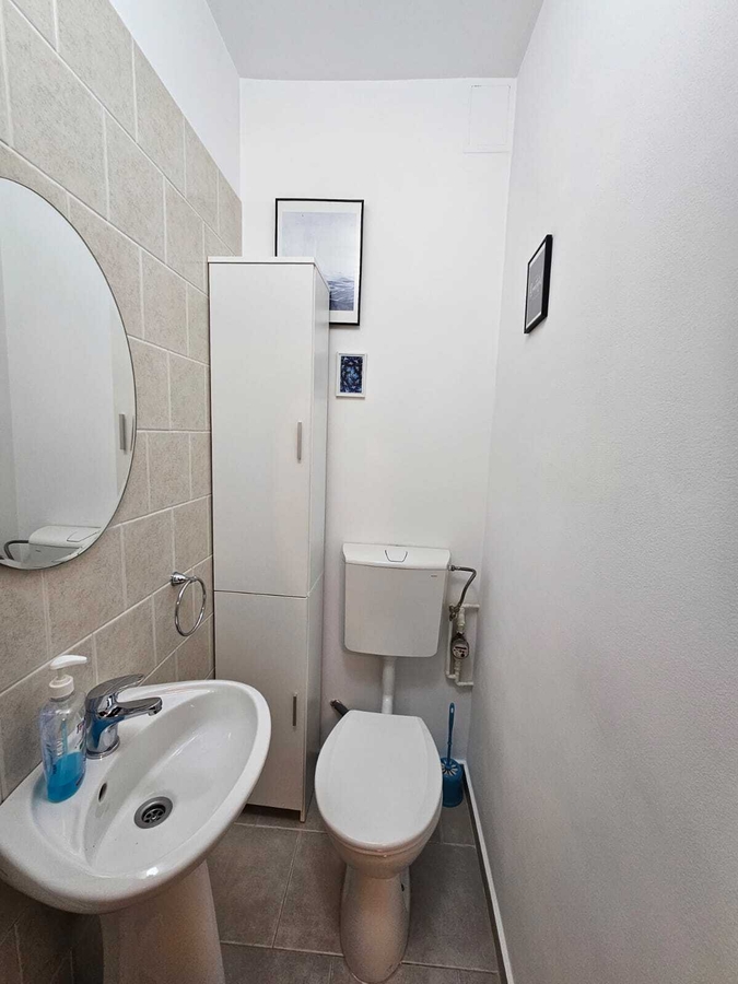 Apartamentul beneficiaza de doua grupuri sanitare, dintre care unul este dotat cu geam, asigurand o ventilatie corespunzatoare, aer conditionat pentru confortul termic pe timpul verii si loc de parcare.
