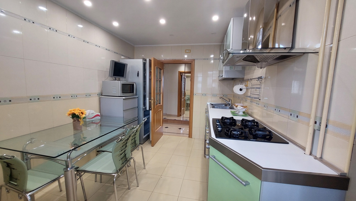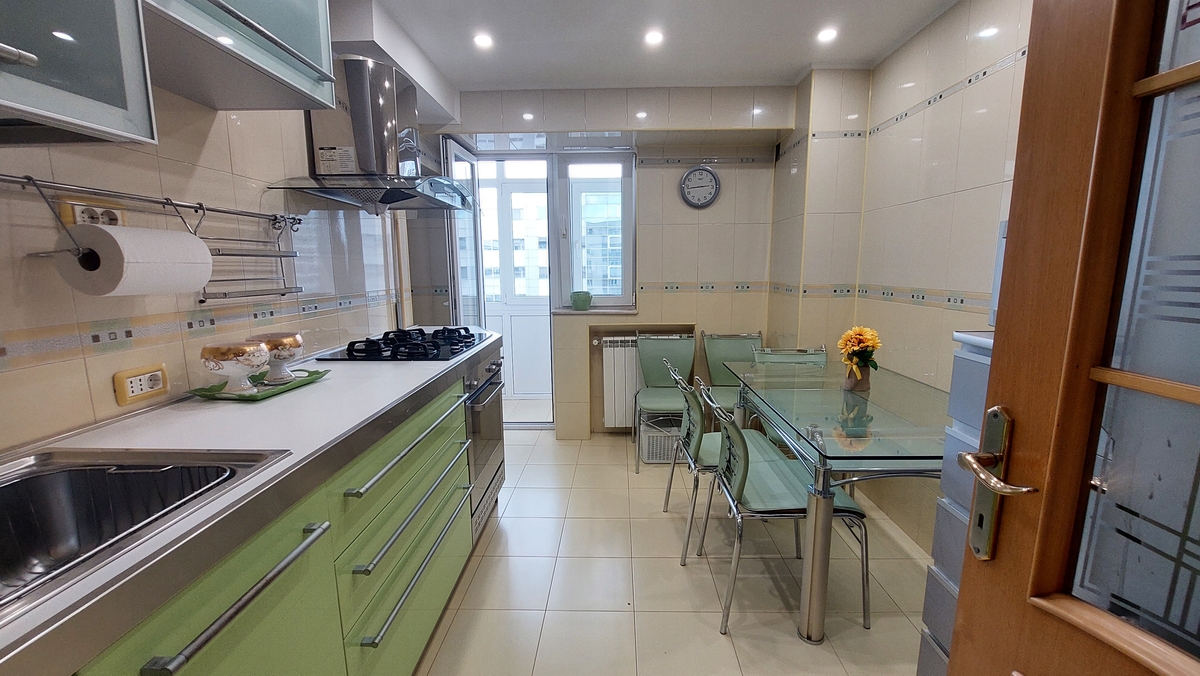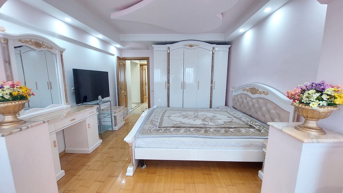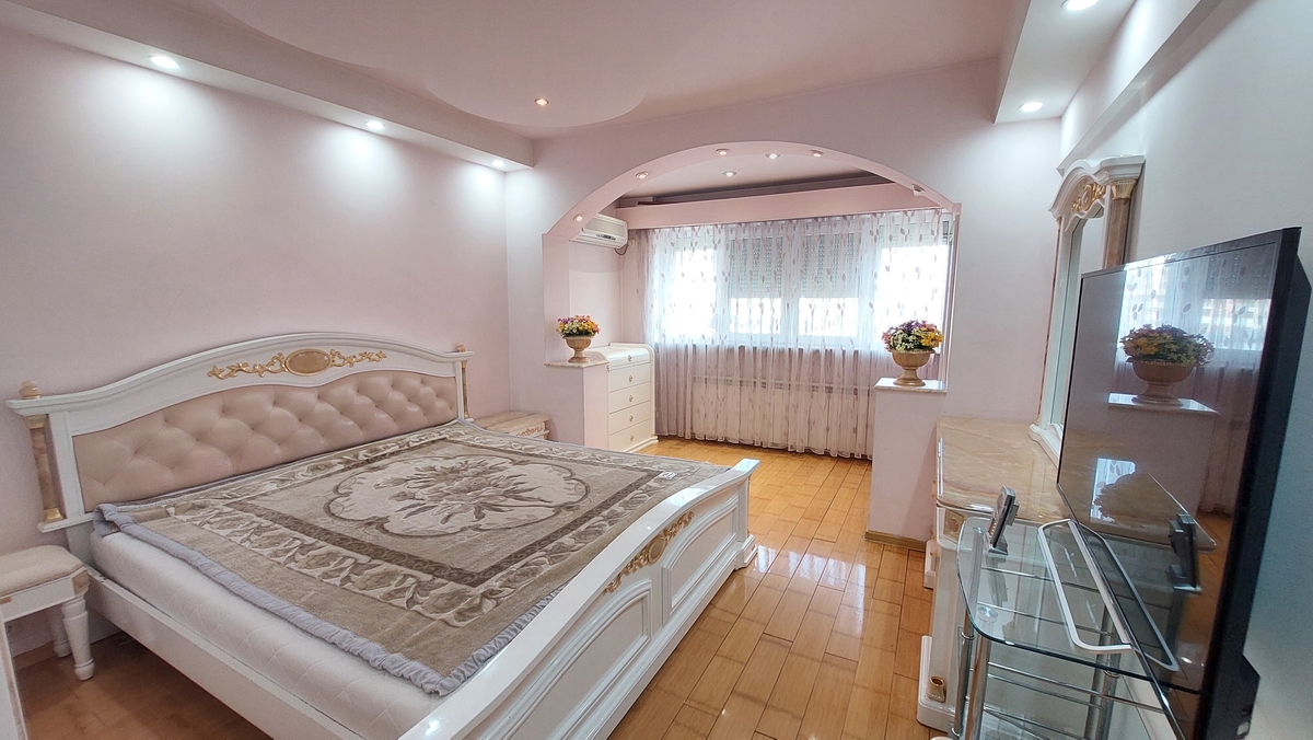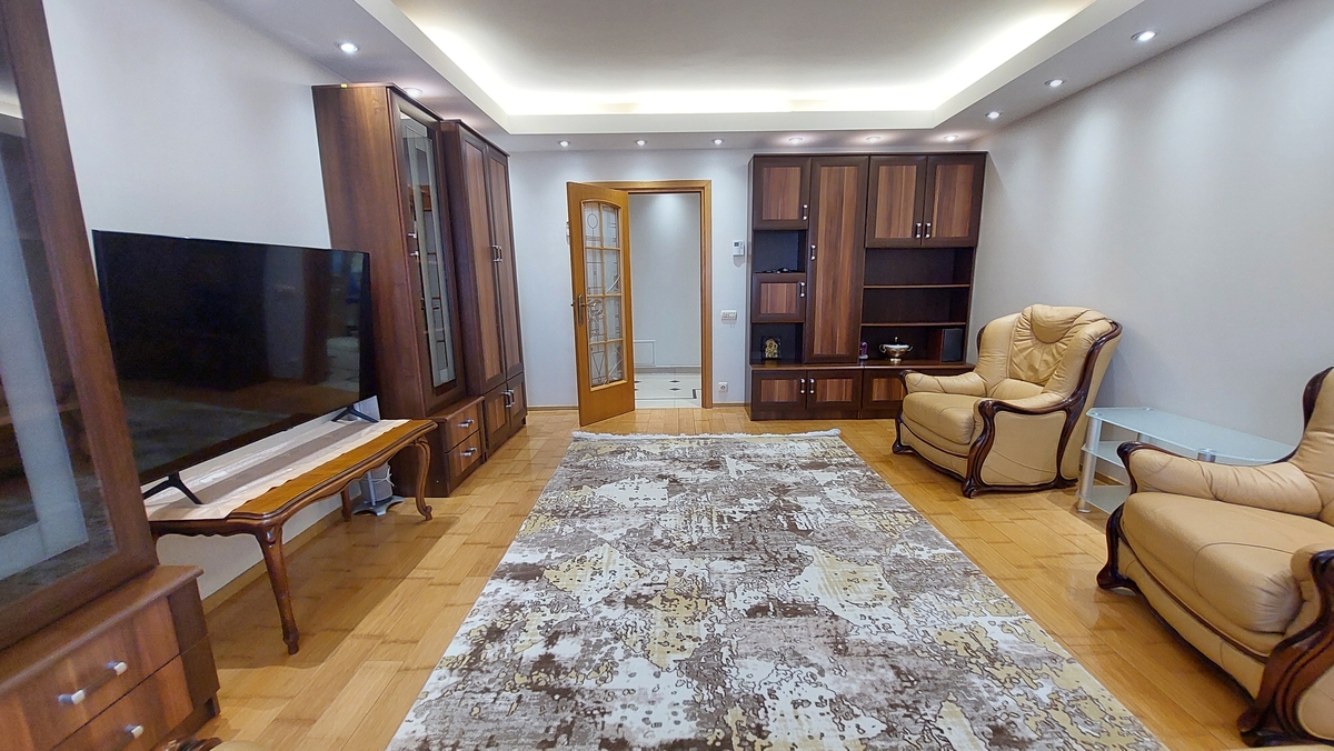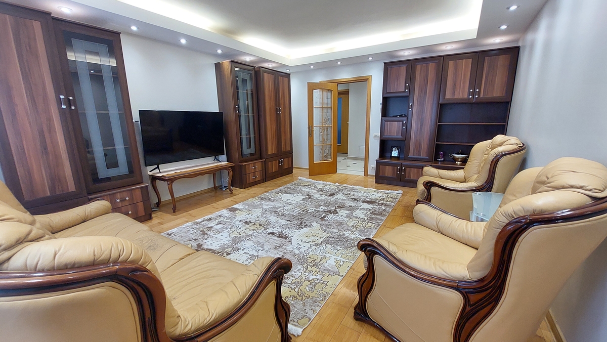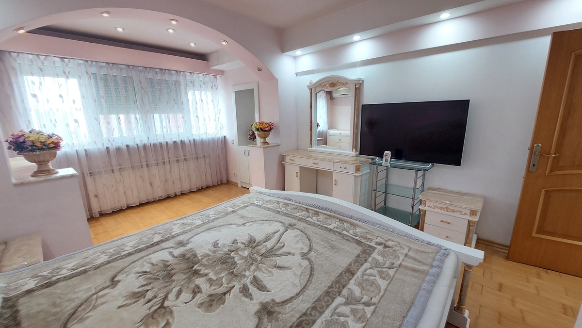 Apartamentul are centrala proprie, este mobilat si utilat, dormitorul mic se va mobila in functie de dorinta chiriasului, dormitor mare (matrimonial) mobilier alb din lemn masiv, bucatarie mobilata si utilata complet cu plita, cuptor, hota, combina frigorifica, masina de splat rufe etc.