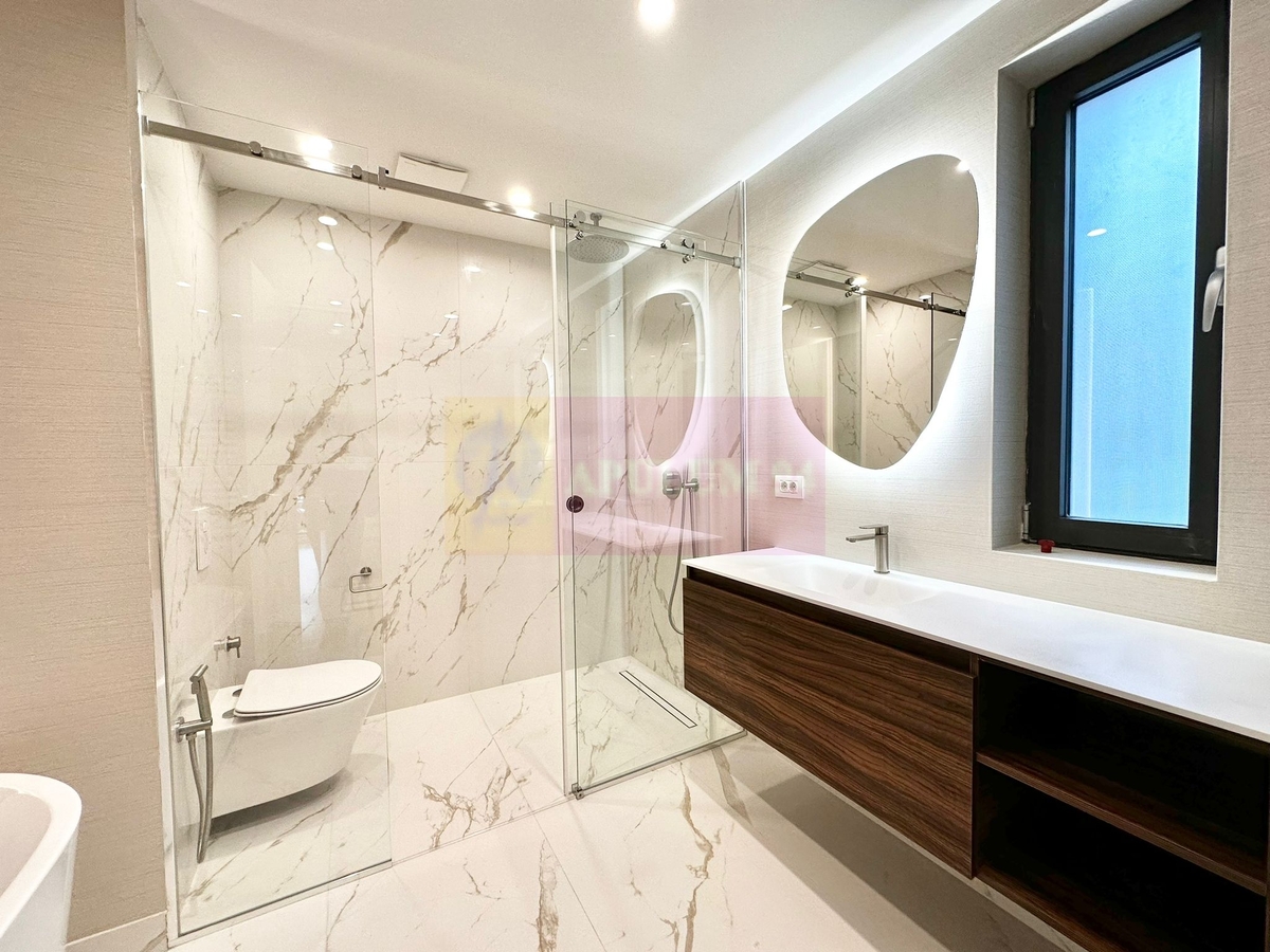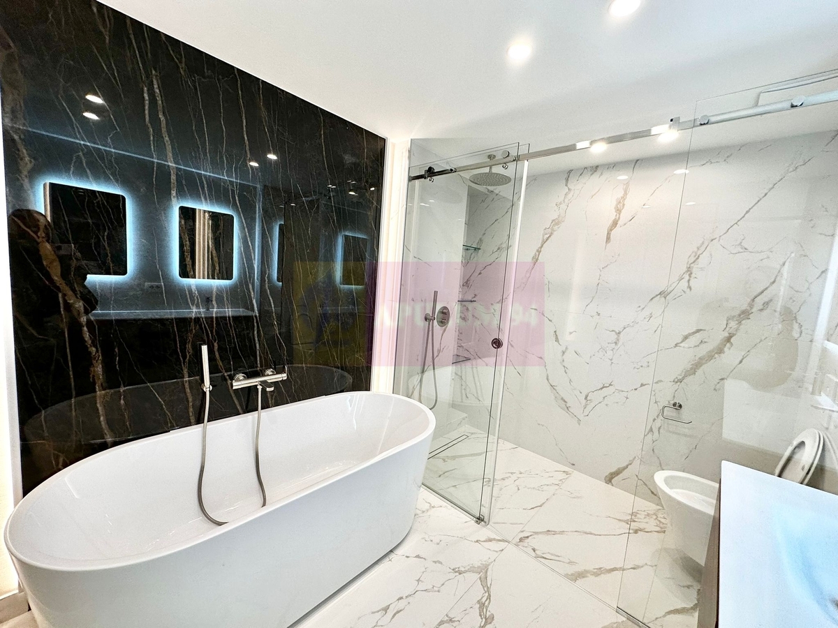 Dormitor matrimonial cu dressing + baie proprie (cada + cabina dus, obiecte sanitare premium)