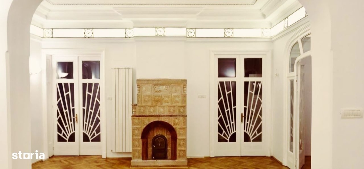Aceasta proprietate unica ocupa parterul inalt al unei vile, pastrand intact farmecul perioadei de glorie a Bucurestiului. Cu o intrare separata ce garanteaza discretia, spatiul a fost restaurat cu o grija infinita pentru detalii: