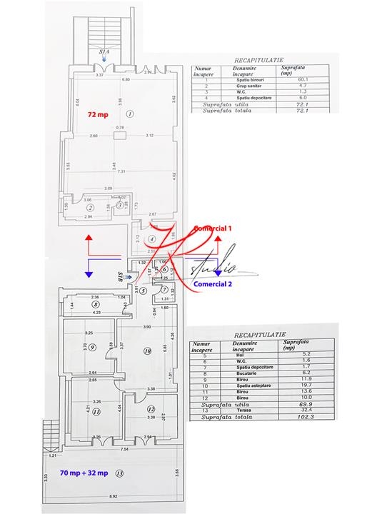 Avem la dispozitie 2 spatii de aproximativ 70 mp util terasa, care se pot uni impreuna pentru a crea un singul loc de 140 mp.