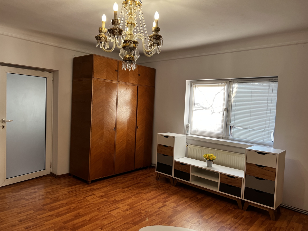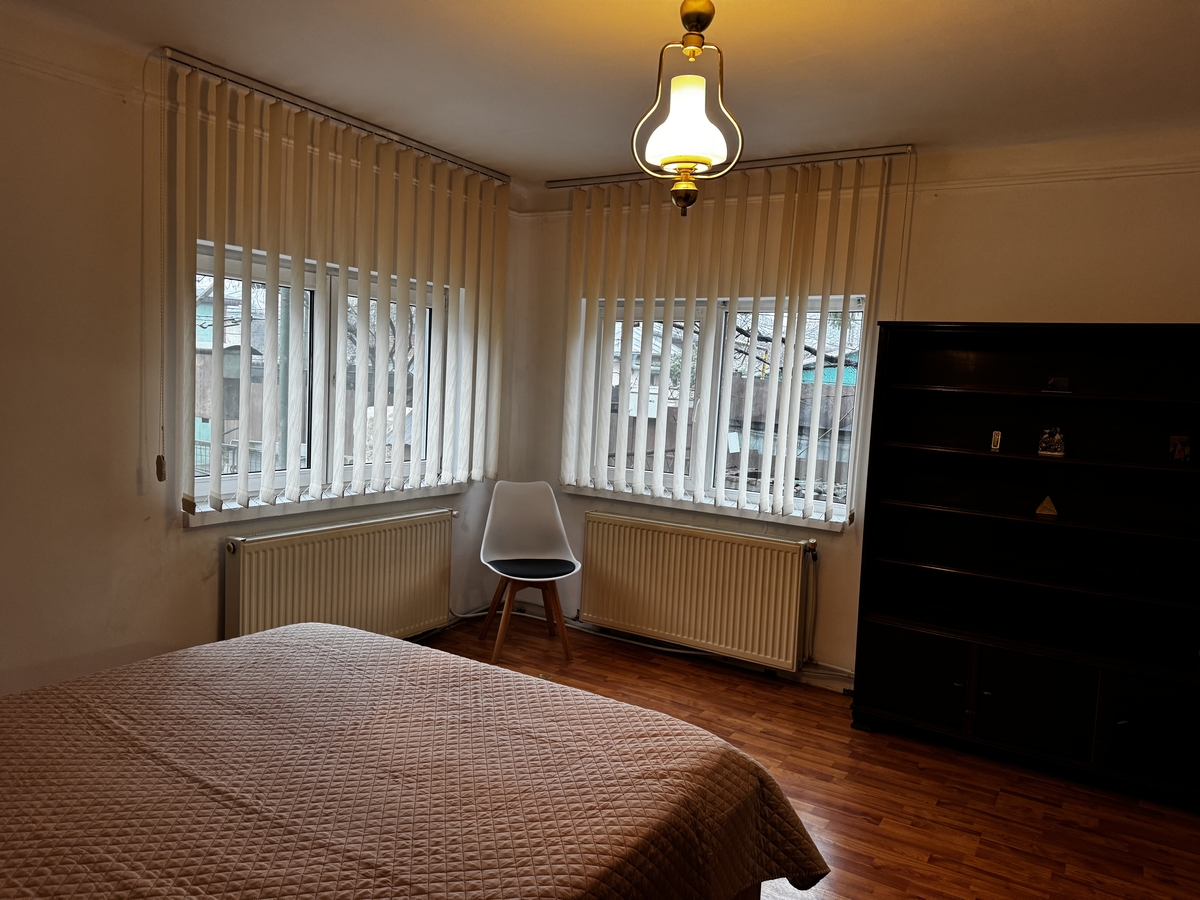 Casa singur curte, 2 camere, 70mp, baie, bucatarie, 2 holuri, centrala proprie, termopane, bucatarie de vara, utilata, mobilata, pivnita, garaj, sera, curte 250 mp.