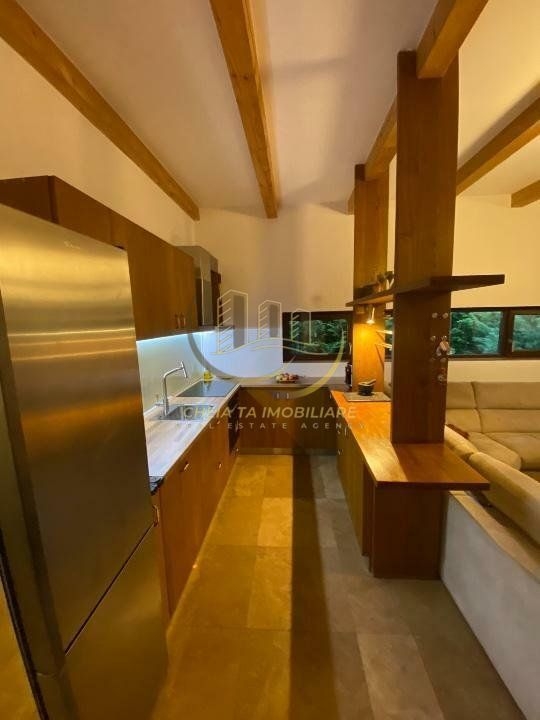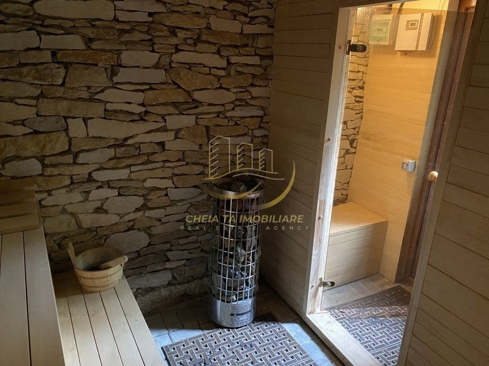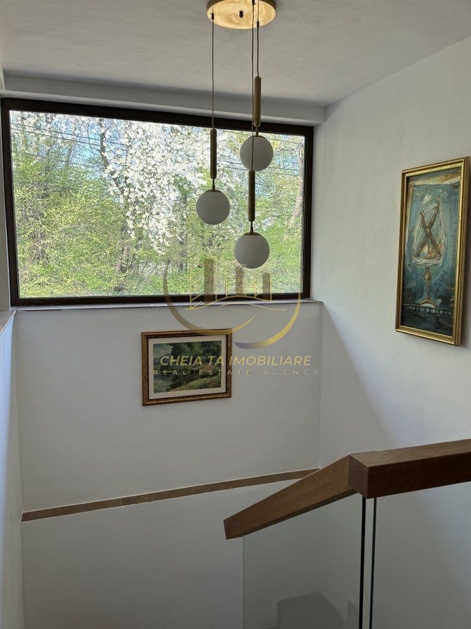 Casa este complet mobilata si utilata, printre dotari fiind masina de spalat vase, plita pe inductie, hota, sauna finlandeza cu roci vulcanice, pompa de caldura si incalzire in pardoseala extrem de eficiente, cu costuri minime ale facturilor, semineu cu lemne, poarta autoportanta cu telecomanda, parcare privata in curte.