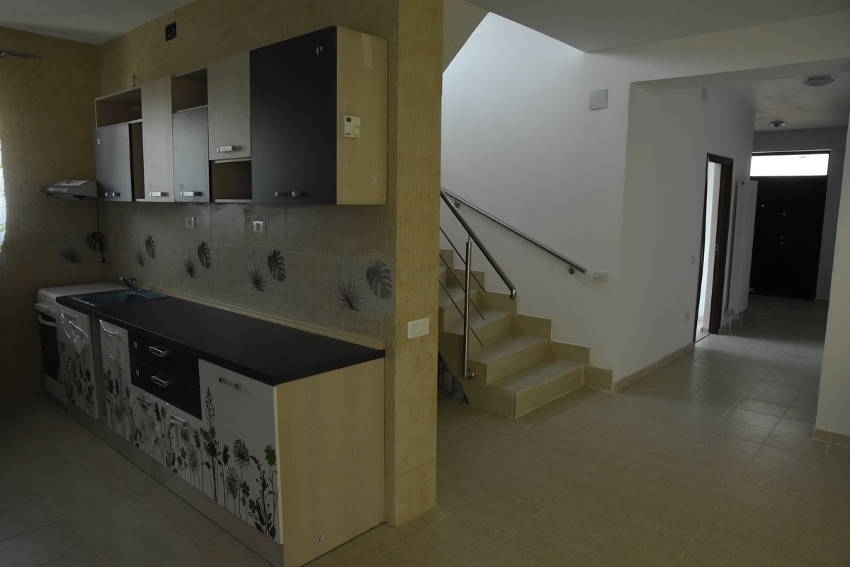 - parter de 111 mp: living, bucatarie, birou, 2 bai, hol, terasa acoperita (28,6 mp);