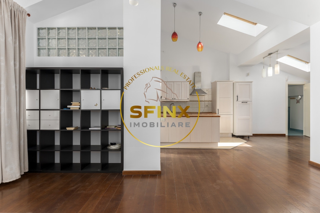 Mansarda este formata din: open-space cu bucatarie, baie, balcon si o generoasa terasa de 46,65mp.