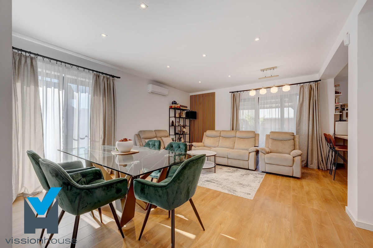 Spatioasa, perfect functionala si conceputa pentru a raspunde tuturor nevoilor unei familii moderne. Fiecare detaliu a fost gandit cu bun gust, pentru a oferi echilibru, confort, stil si functionalitate — este locuinta perfecta pentru o viata armonioasa.