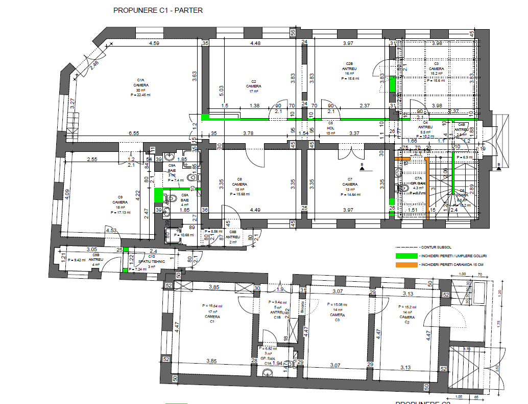 Corp A – 215mp, cu 7 camere ideale pentru cabinete medicale/stomatologie, birouri sau cafenea/restaurant, Airbnb. Include un spatiu comercial cu acces la subsol si grup sanitar.