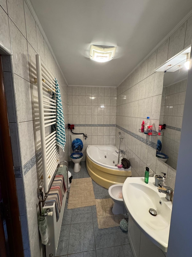 Curtea are 350 mp, compusa din garaj 22 mp, 2 spatii verzi 150 mp, foisor 25mp si casa 140 mp.Casa are o bucatarie, 3 camere mari+1 mica, 2 bai,1 dressing si 2 intrati.