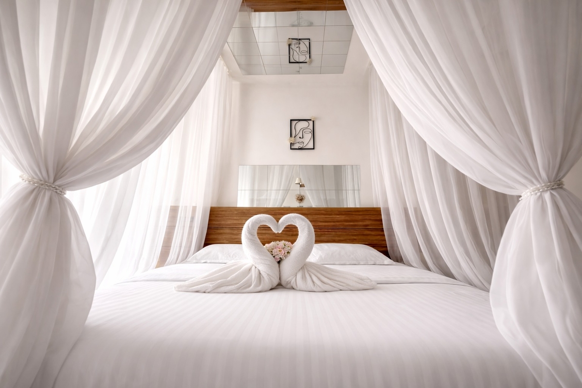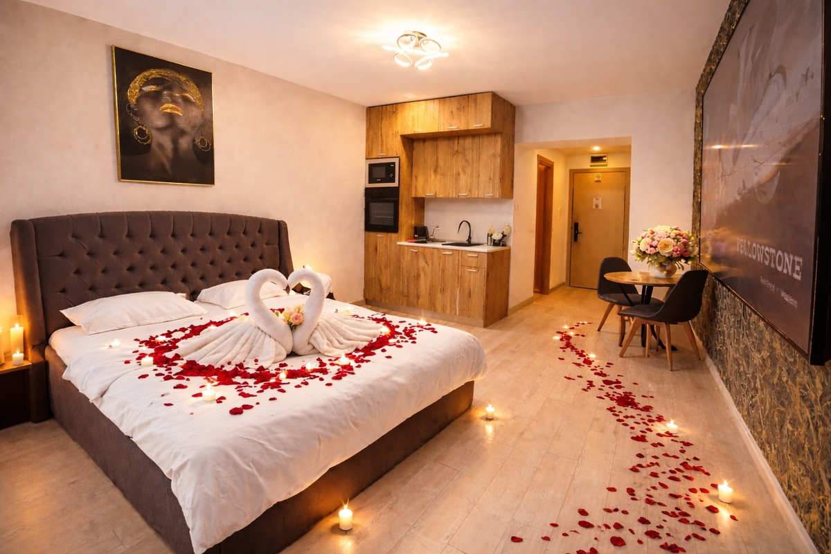 Aranjamente romantice (petale, lumanari, flori, sampanie)