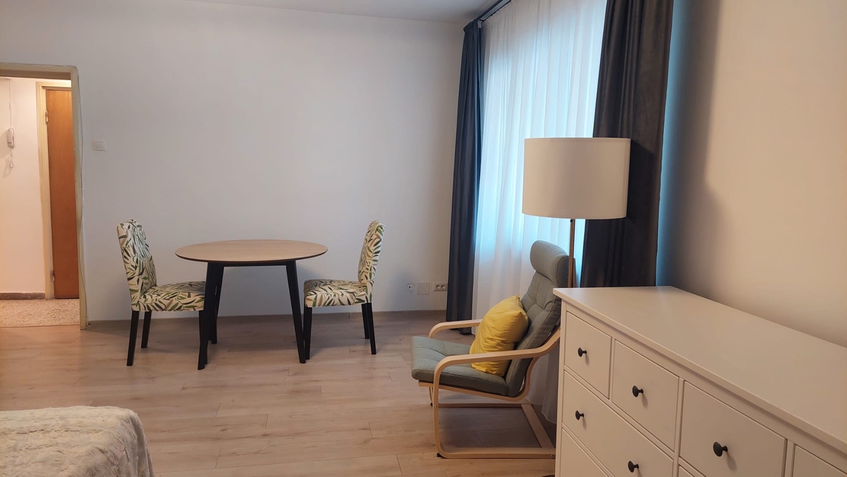 stradal, etaj 2, renovata proaspat, instalatia sanitara si electrica noi, mobilier nou, utilata, spatioasa, luminoasa, apropriere mijloace transport 25, 139, 69, metrou 4 minute, bloc mixt, avans o luna plus garantie, agentie.