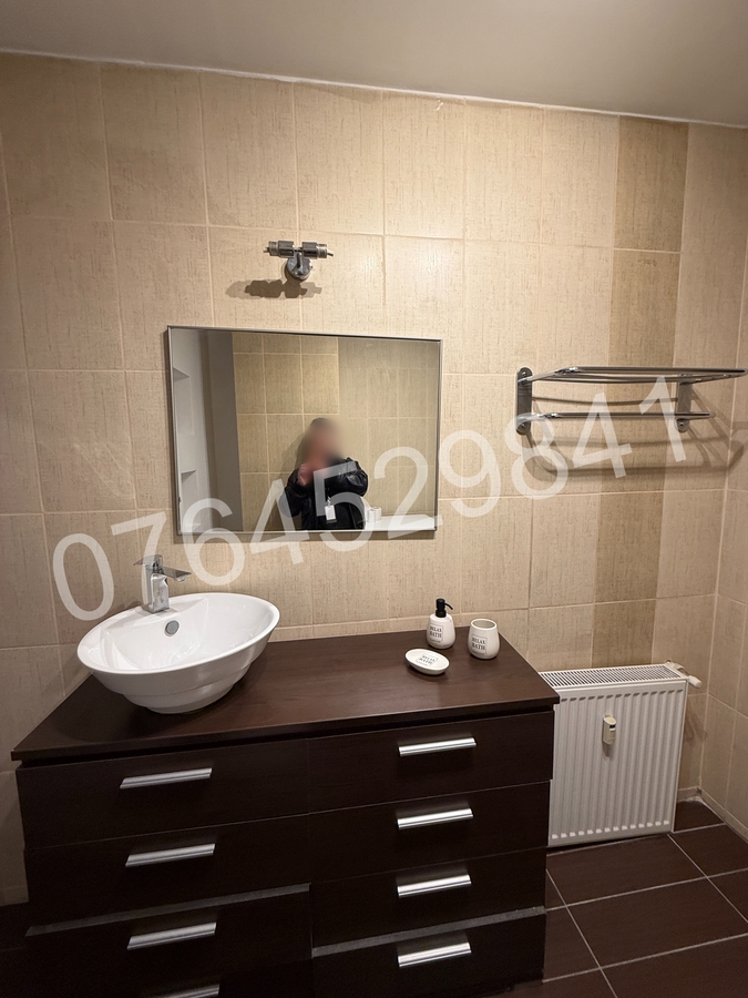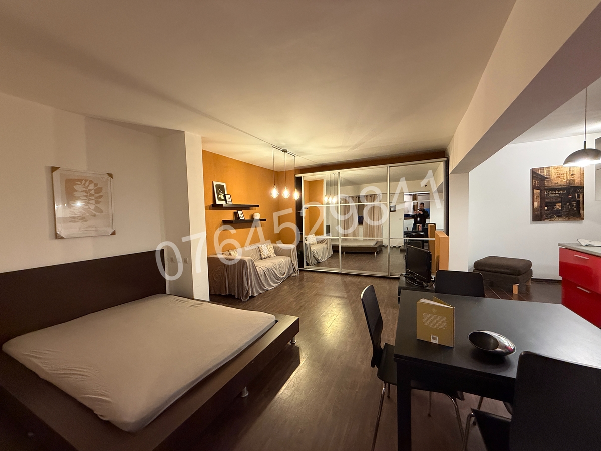 Balcon inclus in camera incalzit cu calorifer, dressing imens pe toata suprafata peretelui, pat, aer conditionat nou in curs de montaj, televizor led, aragaz, cuptor, hota, combina frigorifica, masina de spalat, camara pe hol (spatiu de depozitare). Baie mare cu cada si aerisire naturala.